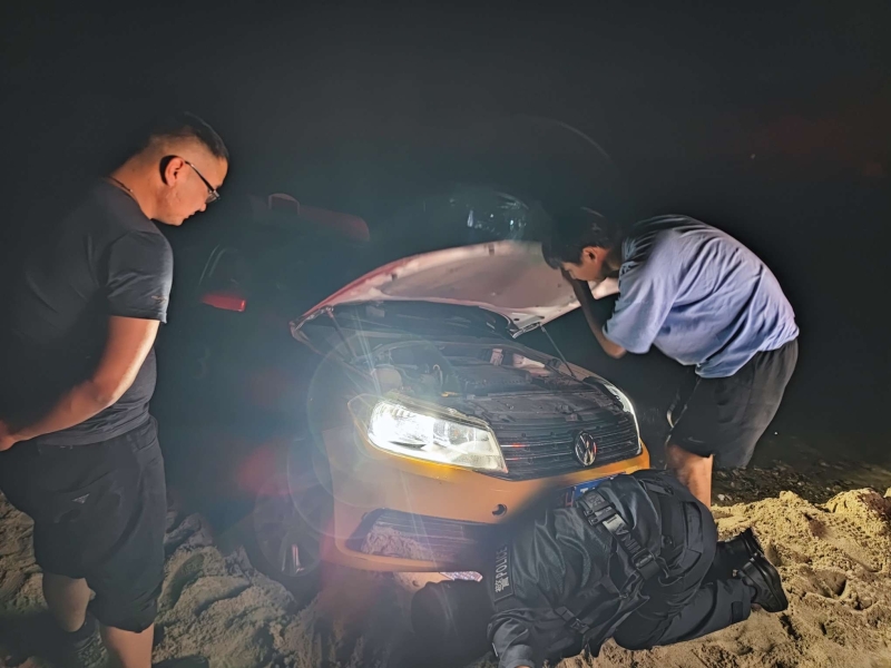 暖新闻|车陷沙窝 警灯照归途