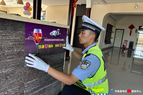 “隔夜酒”别侥幸!阿勒泰交警进酒店检测+贴标语双重提醒