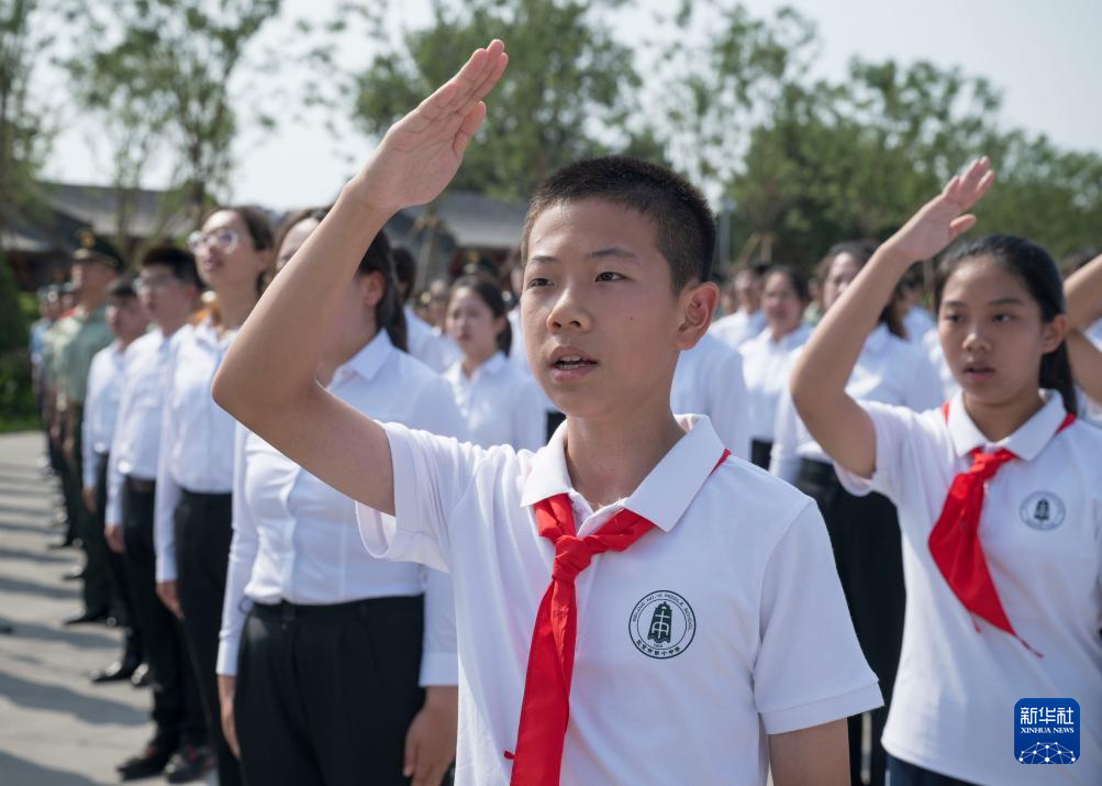 7月7日,北京市第十中学的少先队员在仪式上。新华社记者 才扬 摄