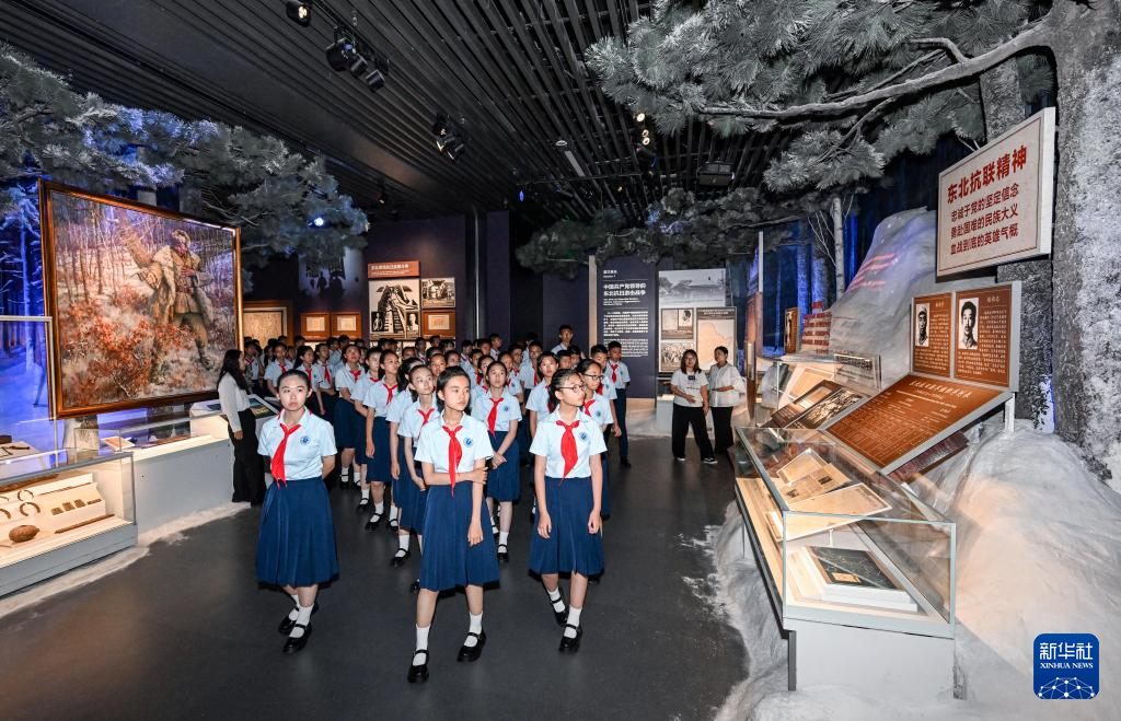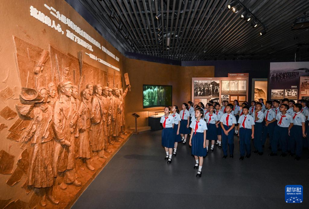 7月7日,北京市第十二中学的少先队员参观主题展览。新华社记者 陈晔华 摄