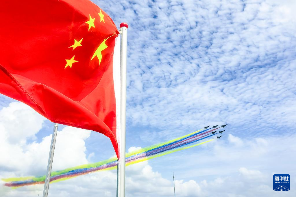 2月4日,中国空军八一飞行表演队在第十届新加坡航展上进行飞行表演。新华社发(邓智炜摄)
