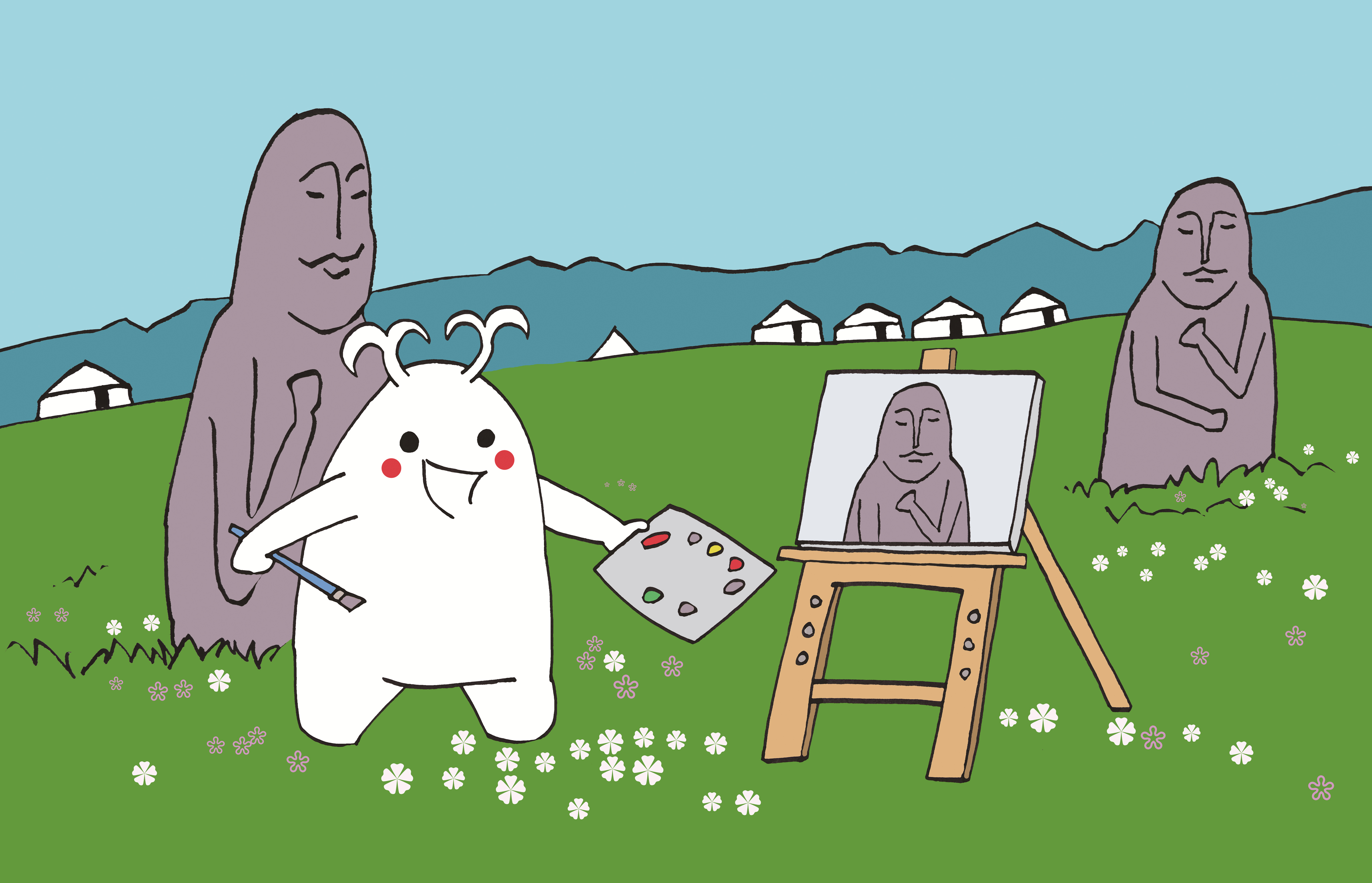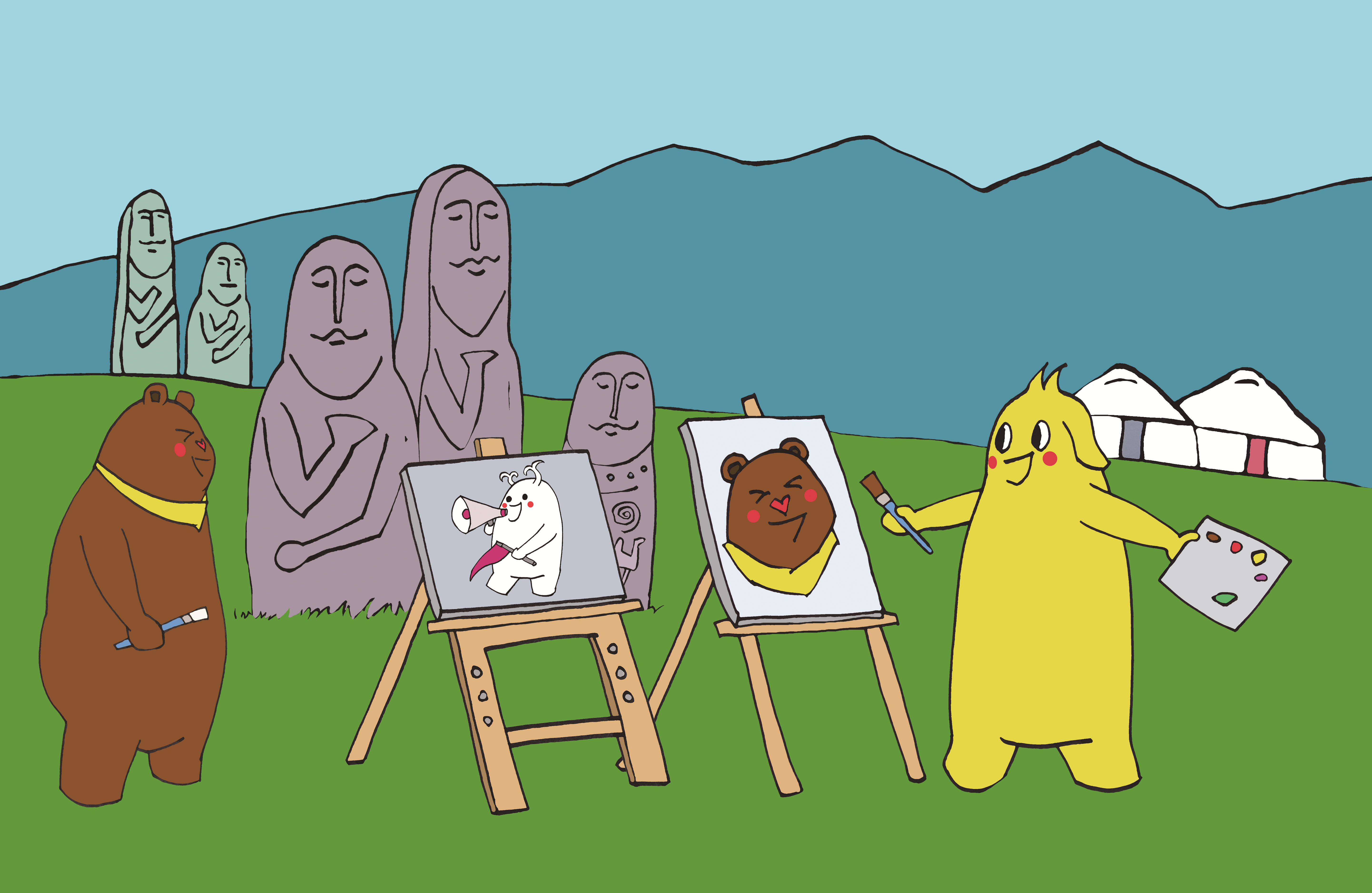 34 布布他们发现,在阿贡盖提草原上,除了居住在这里的牧民和观光游客之外,还有很多带着画架前来写生的画家。
