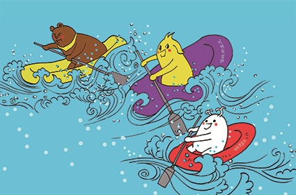 44 布布:“游船上的游客这么多,哈瓦可能有点害羞,我们不如乘坐漂流筏去找他,说不定能遇见。”