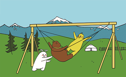 很久以前的某一天,每一片树叶都在沙沙作响,每一朵花都在努力开放……就连阿尔泰山森林里不问世事的猫头鹰,都预感到有什么事情将要发生。突然一团光影出现在森林里,四处跃动,似乎在寻找什么,它找到了最挺拔的白杨,最精神的向日葵。光影幻化出一团褐色。一眨眼,光影消失了,一只可爱的小棕熊正在四处张望,他就是津津。