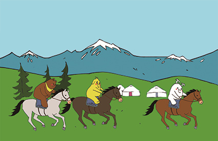 56 在这个村子里,每年都会举办赛马比赛。