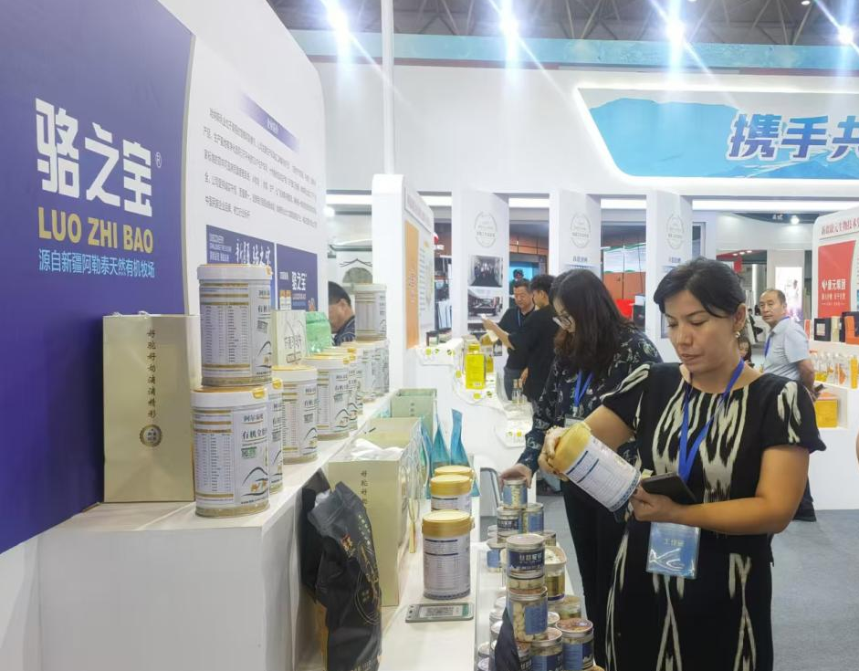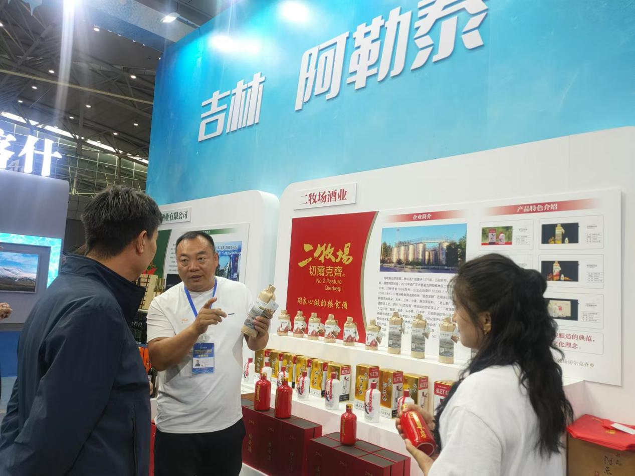 阿勒泰地区二牧场酒业有限公司设置的展位吸引了众多客商,并展开深入洽谈;哈纳斯乳业带来的驼奶产品实现了单日进万元的销售额;其他企业带来的沙棘、蜂蜜、调味品等农特产品也吸引了不少消费者驻足品尝。