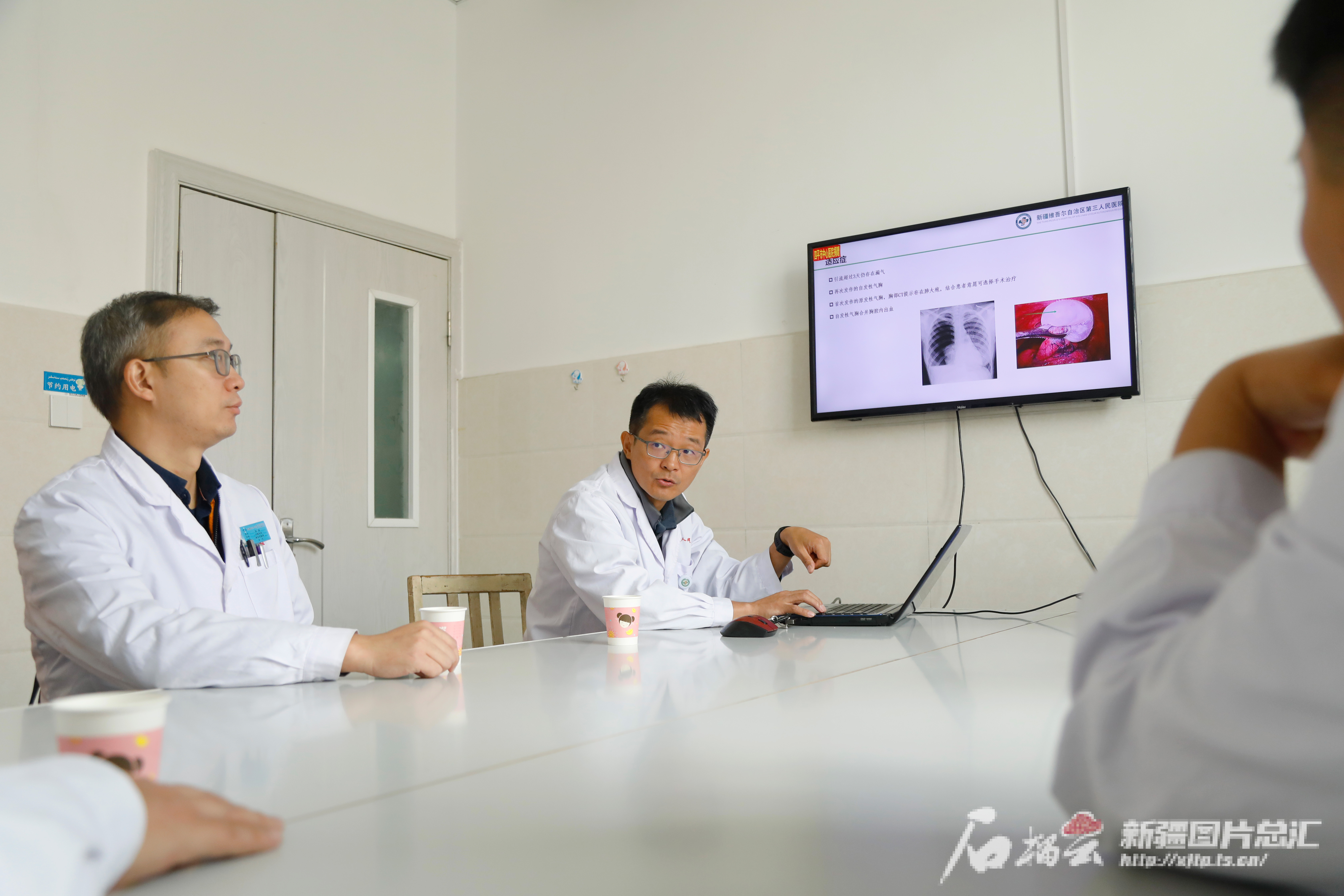 “我们在吉木乃县人民医院进行了一项自治区卫生健康适宜技术推广项目——自发性气胸的微创外科综合治疗的课件分享?!卑捉嘞蚣钦呓樯?,“我们在接诊患者过程中发现,有部分自发性气胸患者,在接受了闭式引流之后,需要进一步治疗。但是转诊过程中可能会出现危机生命的情况。如果县级医院掌握了这项微创下的肺大泡切除技术,可以方便当地的患者就医,这不仅降低了患者转诊风险,还减轻了他们的经济负担?!?/p>