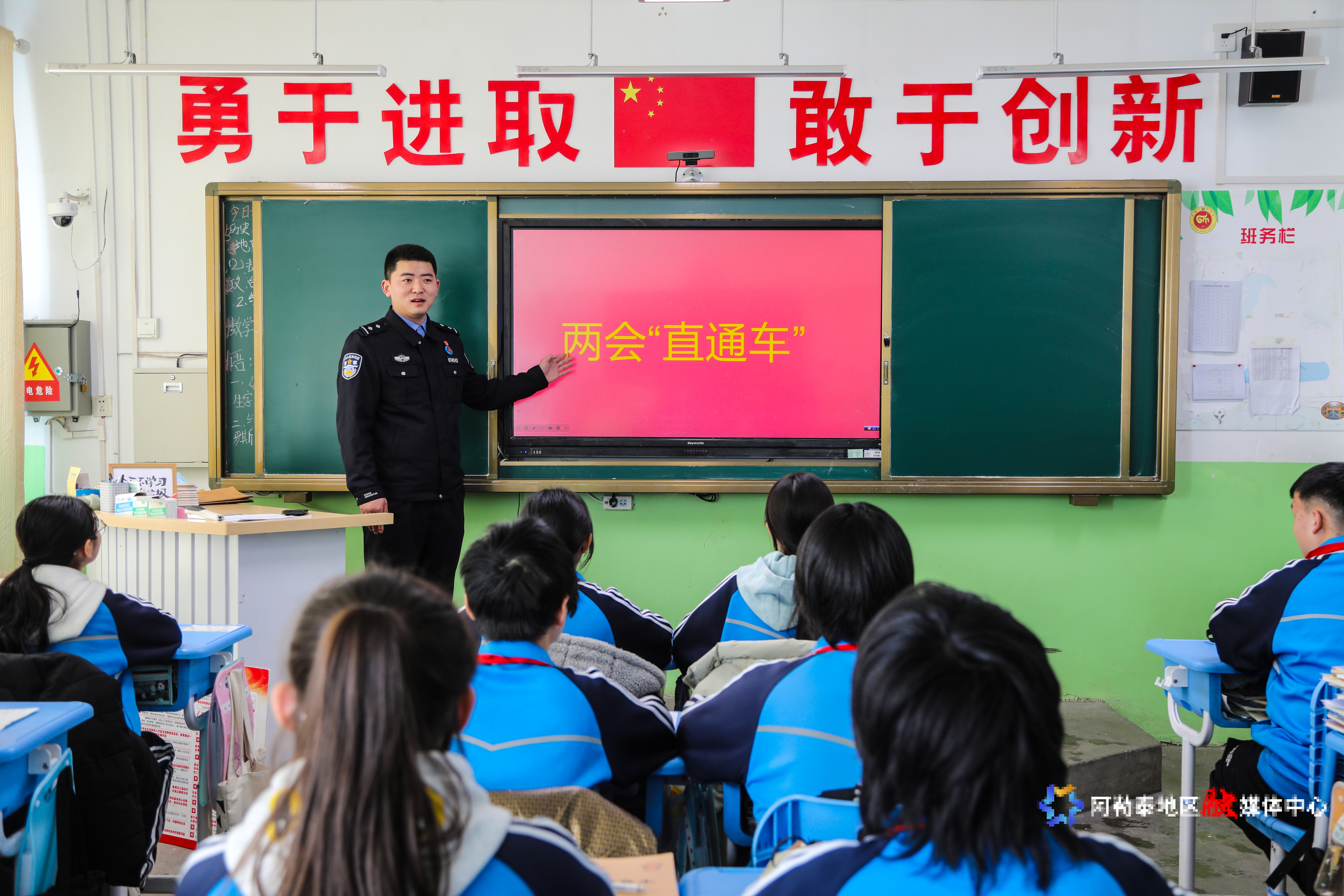 吉木乃出入境边防检查站民警组成两会宣讲小分队走进学校宣讲两会有关教育的新政策。通讯员 谢生祥 摄