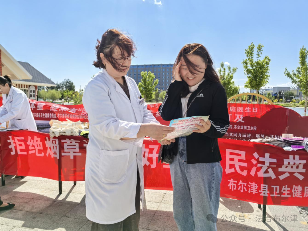 本次活动采用"健康+普法"融合模式,现场累计发放健康知识手册、民法典宣传折页等资料80余份,定制健康包、法律知识书签等宣传品50余件。下一步,布尔津县卫健委将立足职能定位,创新开展形式多样的普法活动,不断拓宽法治宣传覆盖面,切实提升广大群众的法治素养,为建设法治社会贡献卫健力量。(来源:布尔津县卫健委提供)