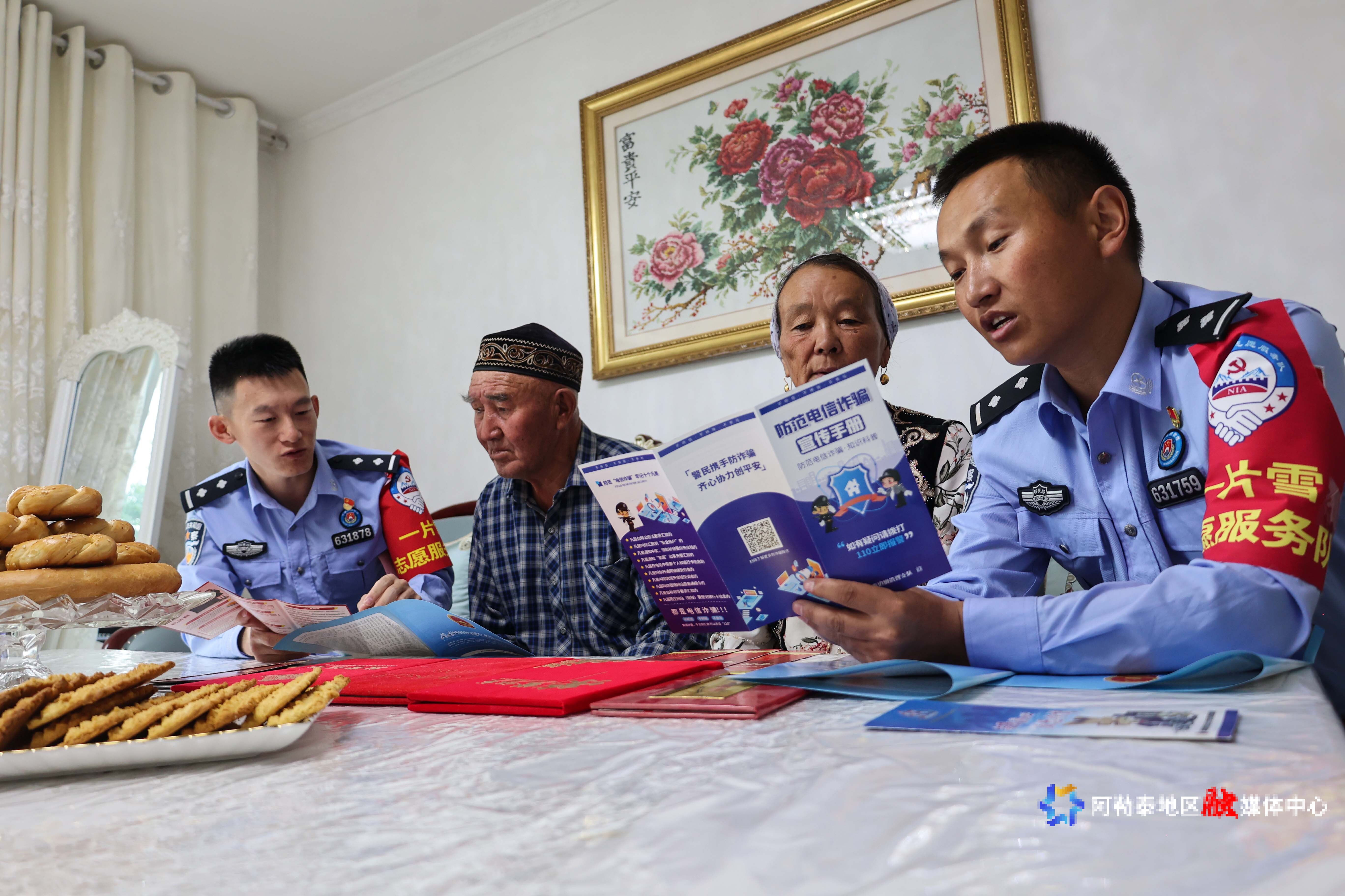 阿勒泰新闻网-阿勒泰地区融媒体中心(实习记者 王景鸿 通讯员 石晓坤)5月26日,新疆阿勒泰边境管理支队吉木乃边境管理大队“一片雪”公益普法小分队走进吉木乃镇别拉热克边境牧业村队,向边境牧区群众宣传“兼职刷单、网络贷款、杀猪盘、冒充客服、快递理赔”等电信网络诈骗类型及手段,提醒群众时刻保持警惕,守好“钱袋子”。