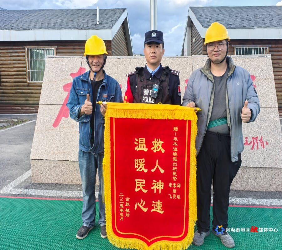 6月3日上午,康复出院的谢先生来到禾木边境派出所,把锦旗交到民警手中。“当时我以为自己撑不住了,是民警和医护人员给了我第二次生命!”谢先生哽咽道。
