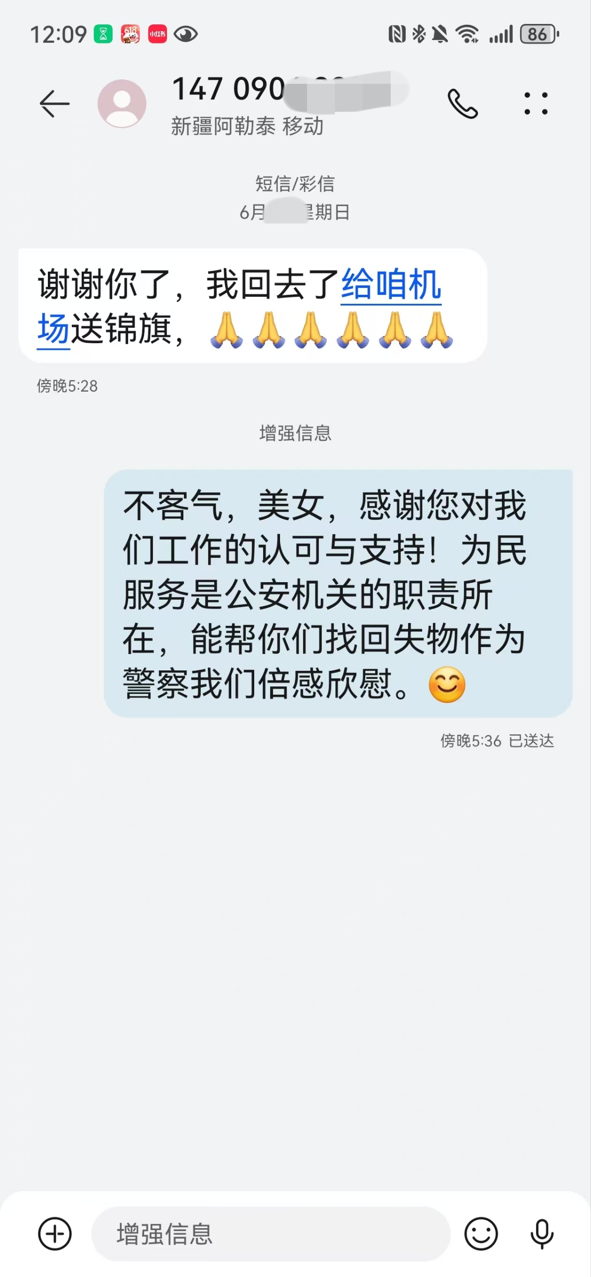 只用2小时,阿勒泰机场民警助万元财物完璧归赵