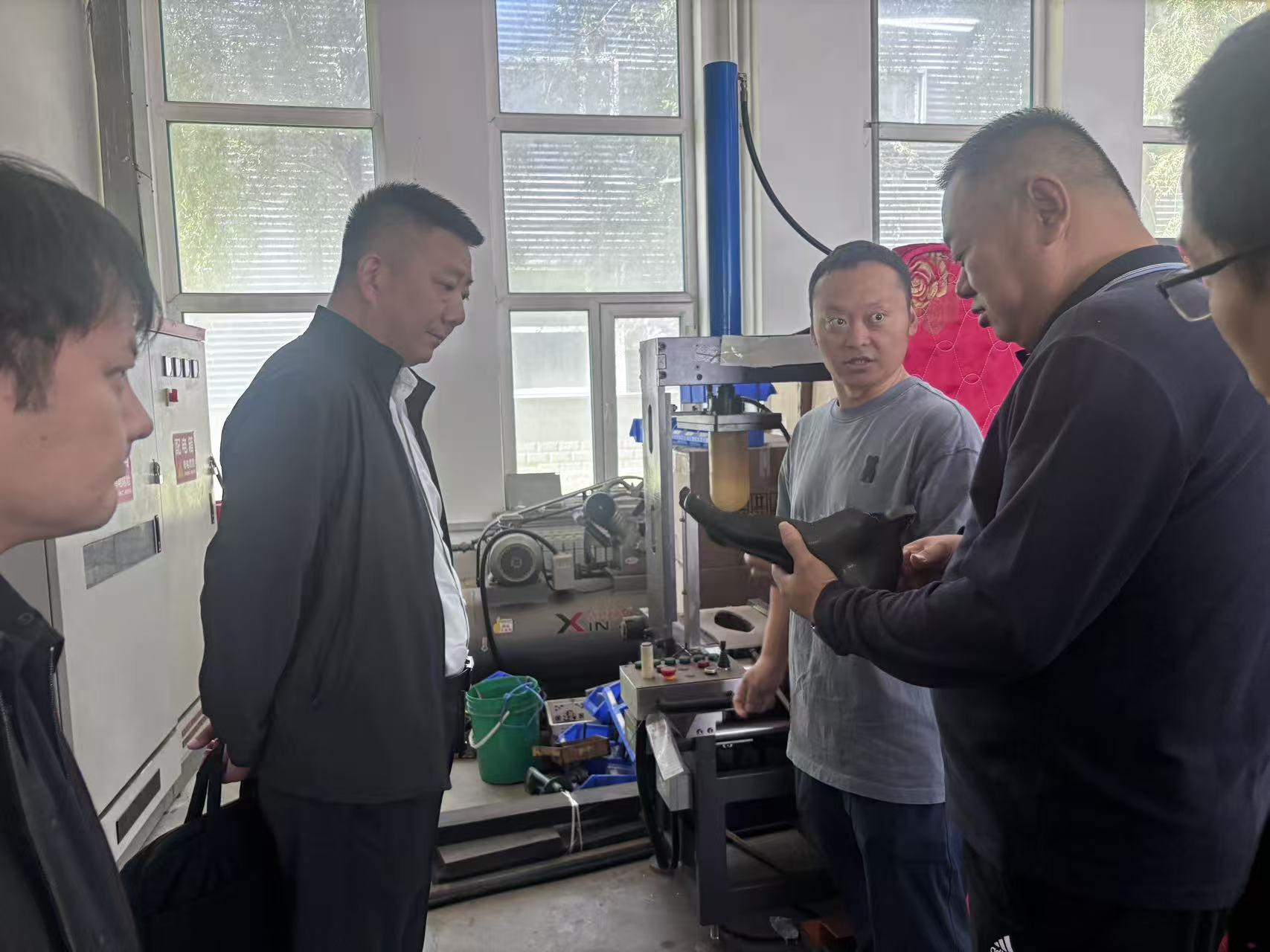 考察团在长春百凝盾体育用品器材有限公司,实地察看企业体育用品器材的研发、生产全流程。