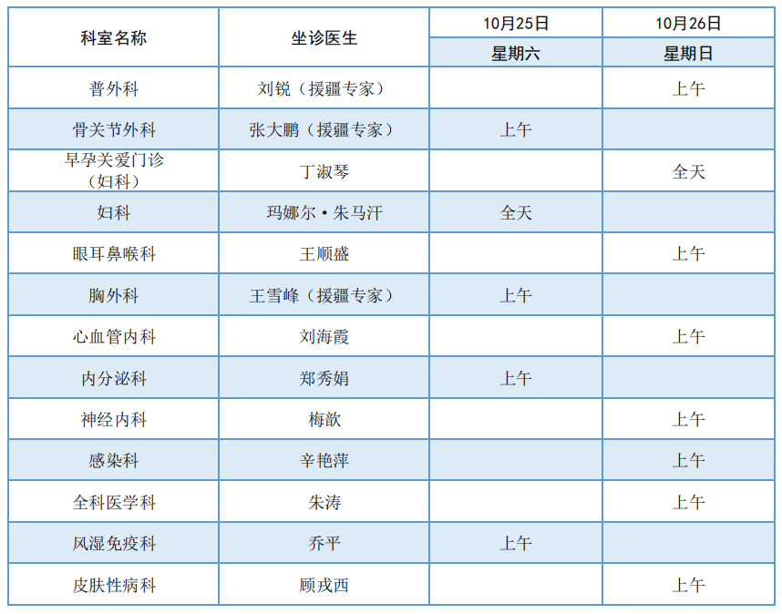 阿勒泰地区人民医院10月25日至26日专家门诊出诊信息