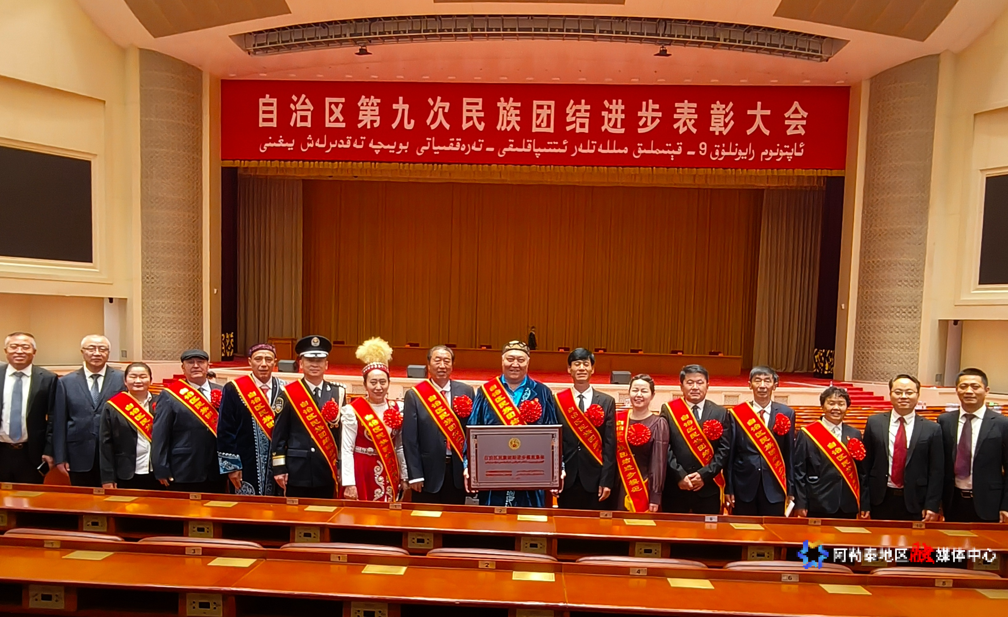 顾耀光在自治区第九次民族团结进步表彰大会上。 右七为顾耀光