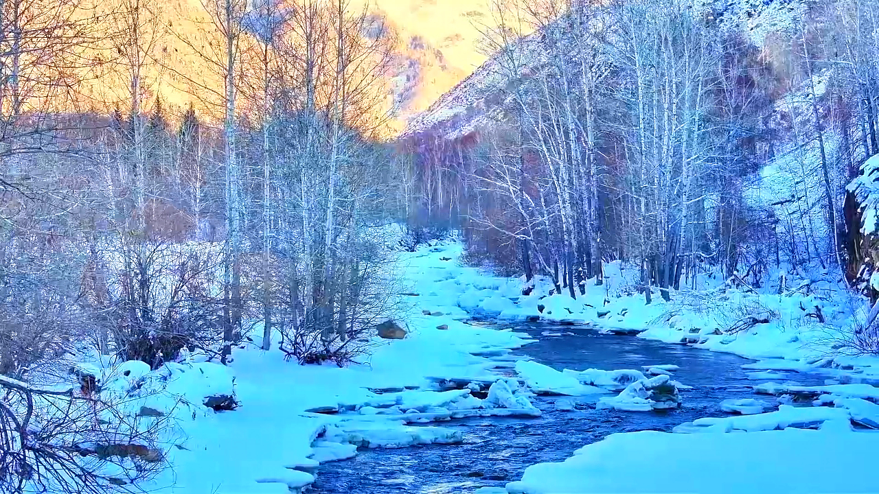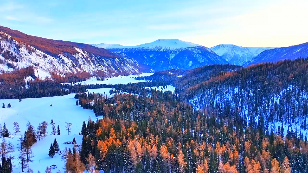 雪山为幕、彩林作毯,冰河绕出独属阿禾的冬日曲线。