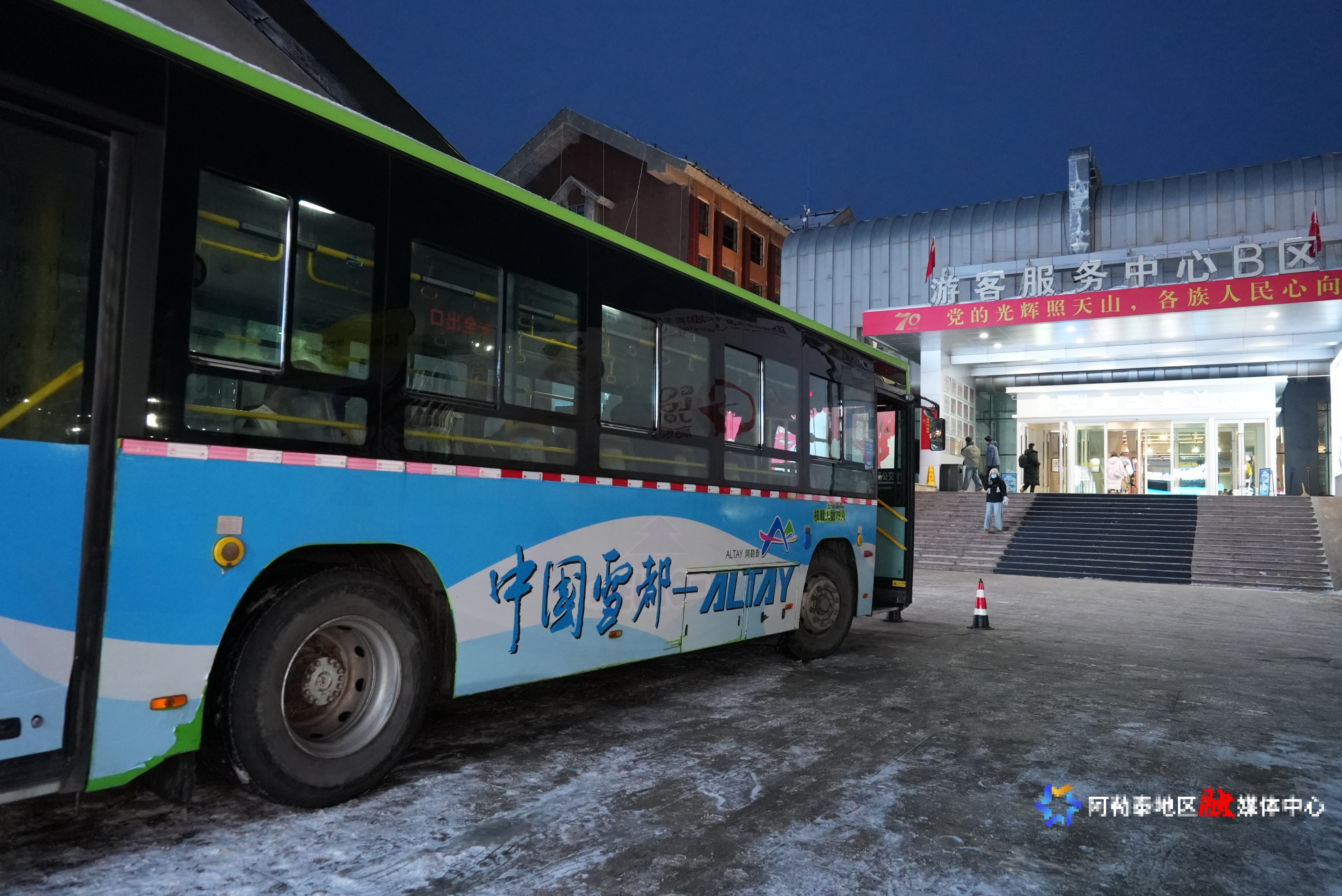 现阶段,阿勒泰市疆山府小区居民可乘坐滑雪场公交专线作为冬季出行选择。实习记者 包洪宇摄