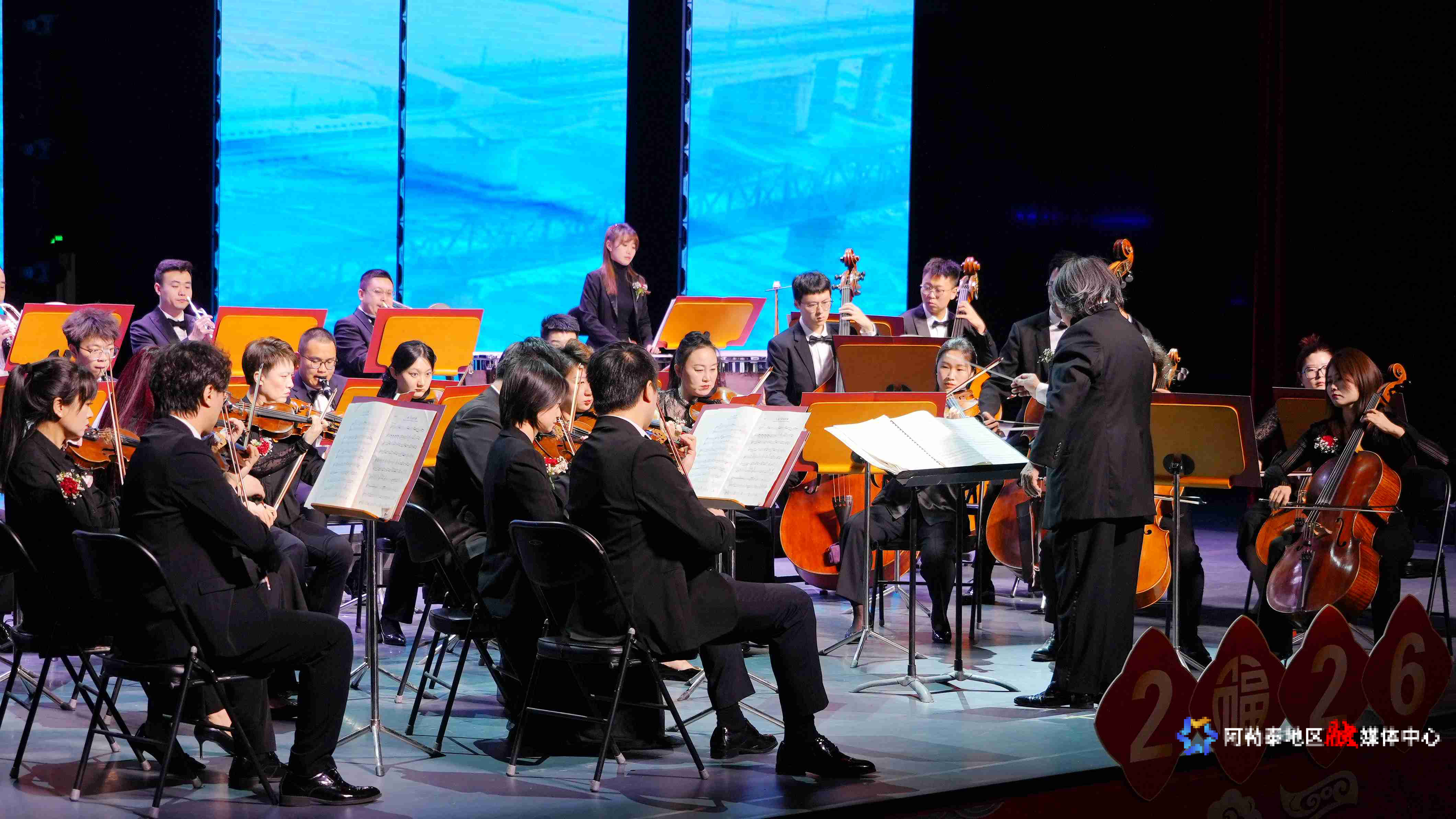 12月27日晚,《雪韵阿勒泰·交响北疆情》黑龙江援疆迎新音乐会在阿勒泰雪都大剧院奏响。记者 张福新摄