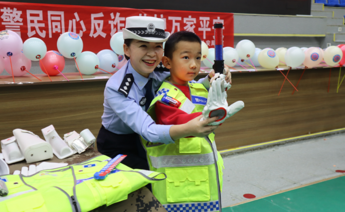 1月2日,青河县公安局训练馆内气氛热烈,警营开放日活动吸引了120余名学生沉浸式参与。活动设置了交通安全、警用装备、禁毒反诈等专区。VR醉驾体验让学生直观感受酒驾危害,民警把交通指挥手势融入舞蹈传递安全知识……一系列活动让学生们深刻感受到公安队伍的过硬作风。