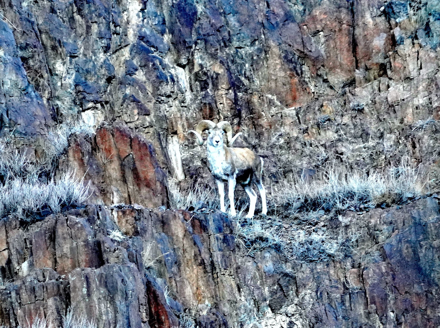 2026年1月9日,记者在阿勒泰地区吉木乃县萨吾尔山片区拍到国家二级保护动物盘羊。