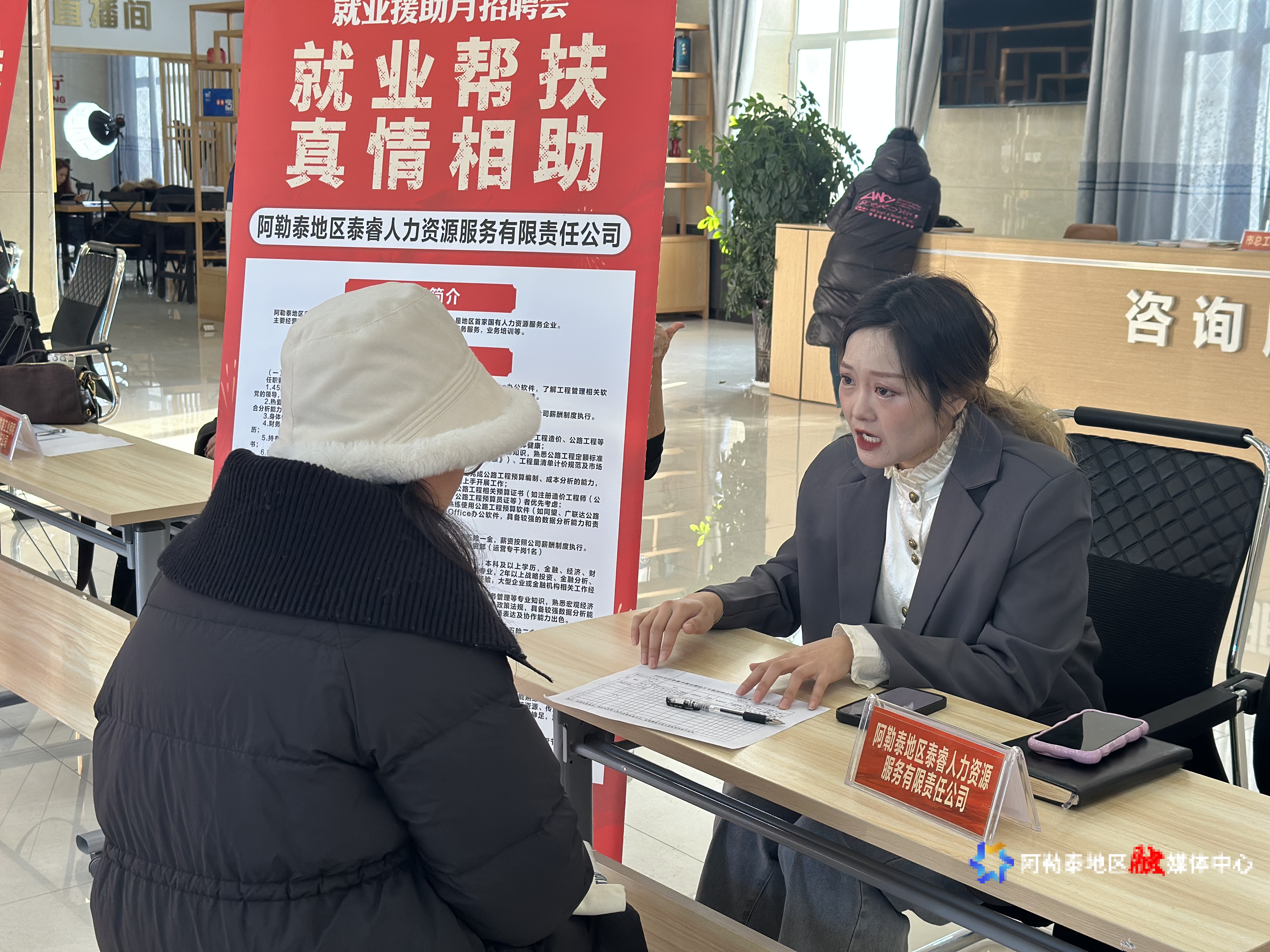 雪都嘟/阿勒泰地区融媒体中心(记者 古扎丽·阿布都热西提 阿丽娜·阿依登)1月22日,以“就业帮扶 真情相助”为主题的阿勒泰春风行动暨就业援助月招聘会在阿勒泰人力资源市场举办。