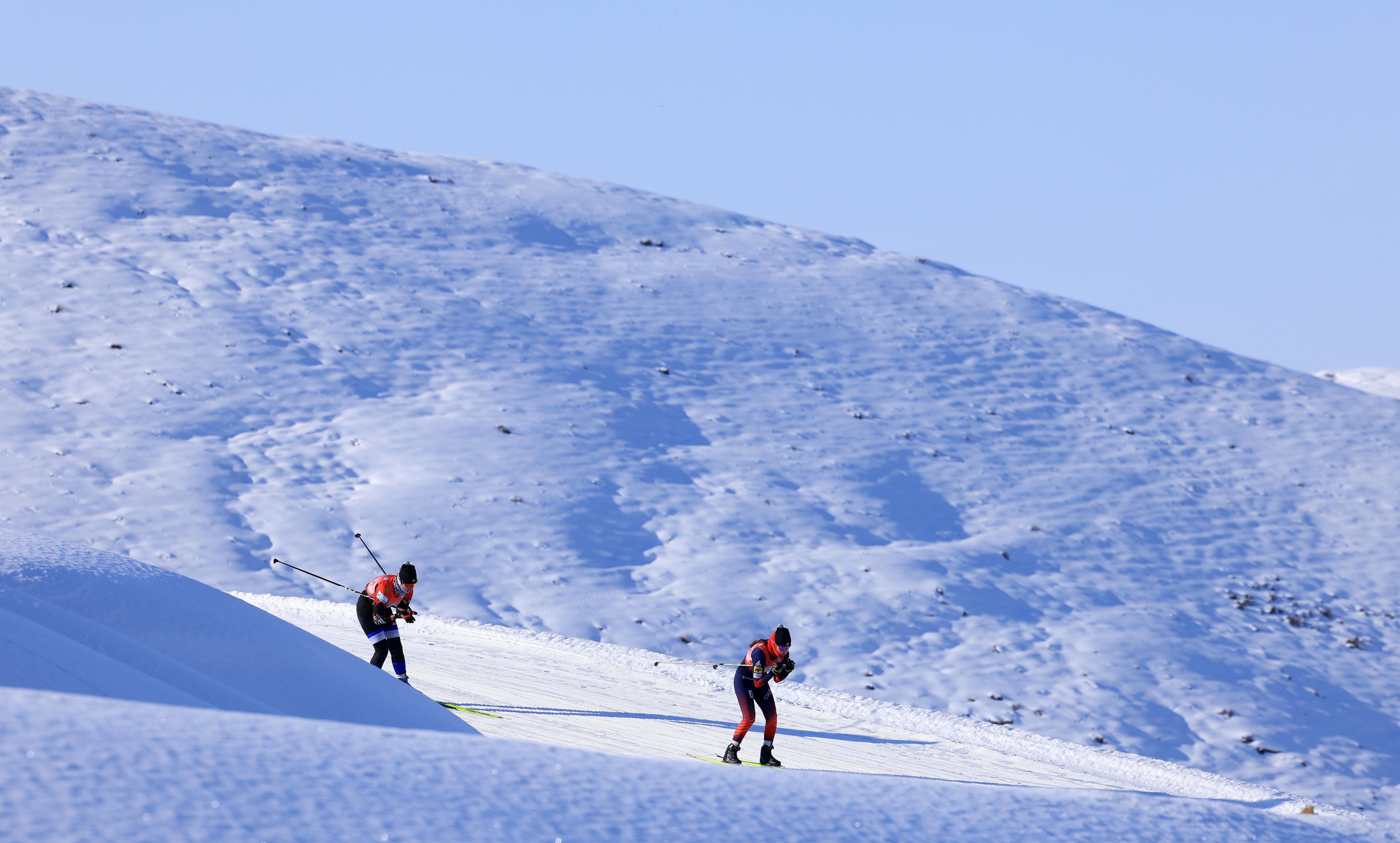 同日,滑雪登山比赛精彩上演。选手们脚蹬传统毛皮滑雪板,手持木质雪杖,沿赛道向山巅进发。爬坡时借毛皮逆茬止滑特性稳步攀升,抵达山顶后借助顺茬毛皮顺势俯冲。最终,滑雪登山(古老毛皮)3公里(男子乙组)冠军为俄罗斯图瓦共和国代表团运动员巴彦岱·其米特-多尔朱。