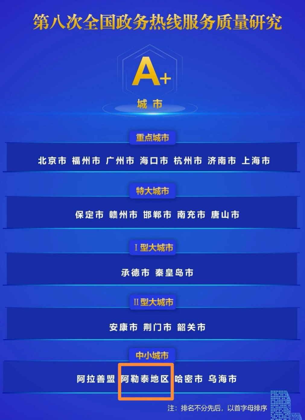 喜报!阿勒泰地区12345热线获评全国中小城市最高等级“A+”