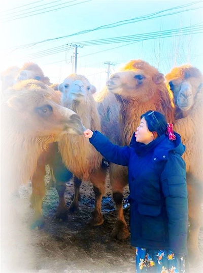 我们见过大漠边、戈壁上的骆驼,却从未见识过如此深情的相伴。于是,我和朋友们主动上前,钻进骆驼院子,想与眼前这些高大的母骆驼近距离接触。身高的差距难免让人忐忑,不怕一万就怕万一,我们小心翼翼试探着靠近。我向上伸出右臂,厚重的棉衣裹着细瘦的胳膊——即便真有意外,也能稍作抵挡。一峰母骆驼温情地俯视着我,双眸清澈,竟似泪光盈盈。它微微退后,缩了缩脖子,随即又向前、再向前——难道骆驼也会下象棋?这分明是经典的“退一进二”招式!几番试探后,母骆驼渐渐胆大起来,用脸颊蹭了蹭我的棉衣袖,鼻孔、嘴唇慢慢向我靠近。它感受到我的善意,我也体会到了它的温和。人和动物,就这样简简单单地相向而行,不约而同地靠近,尽可能地贴近。有时人与人近在咫尺,却不言不语,非要借助第三方才能沟通;而人与动物虽分属不同种群,却能透过一个简单的肢体动作,奇迹般地感知彼此的善意。这份主动示好,何尝不是爱的一种?表达方式或许多样,但殊途同归——唯有灵性的生命,才能真切感受这份心意。