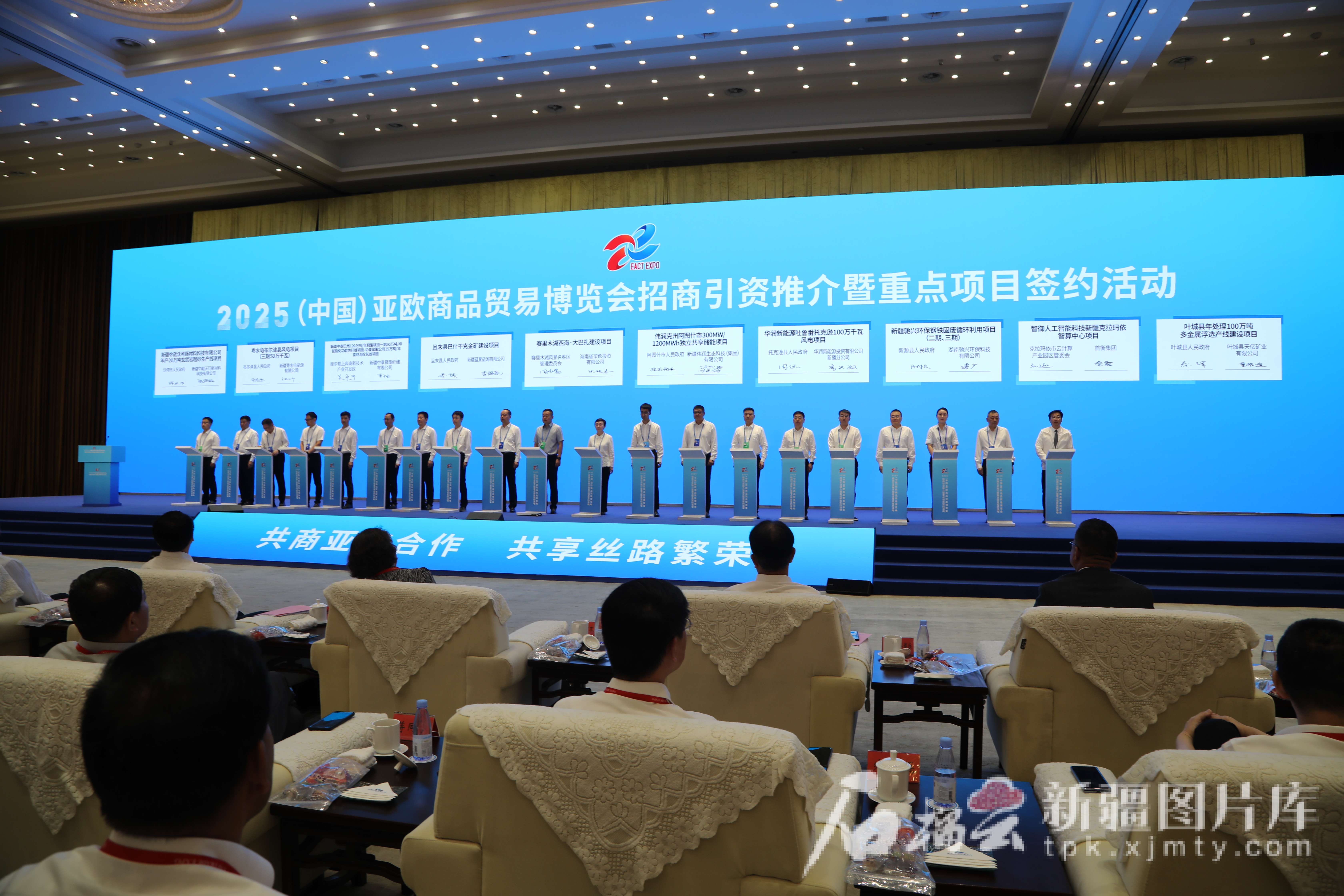 6月27日上午,2025(中国)亚欧商品贸易博览会招商引资推介暨重点项目签约活动现场,代表们上台签约。贾晓雪 摄