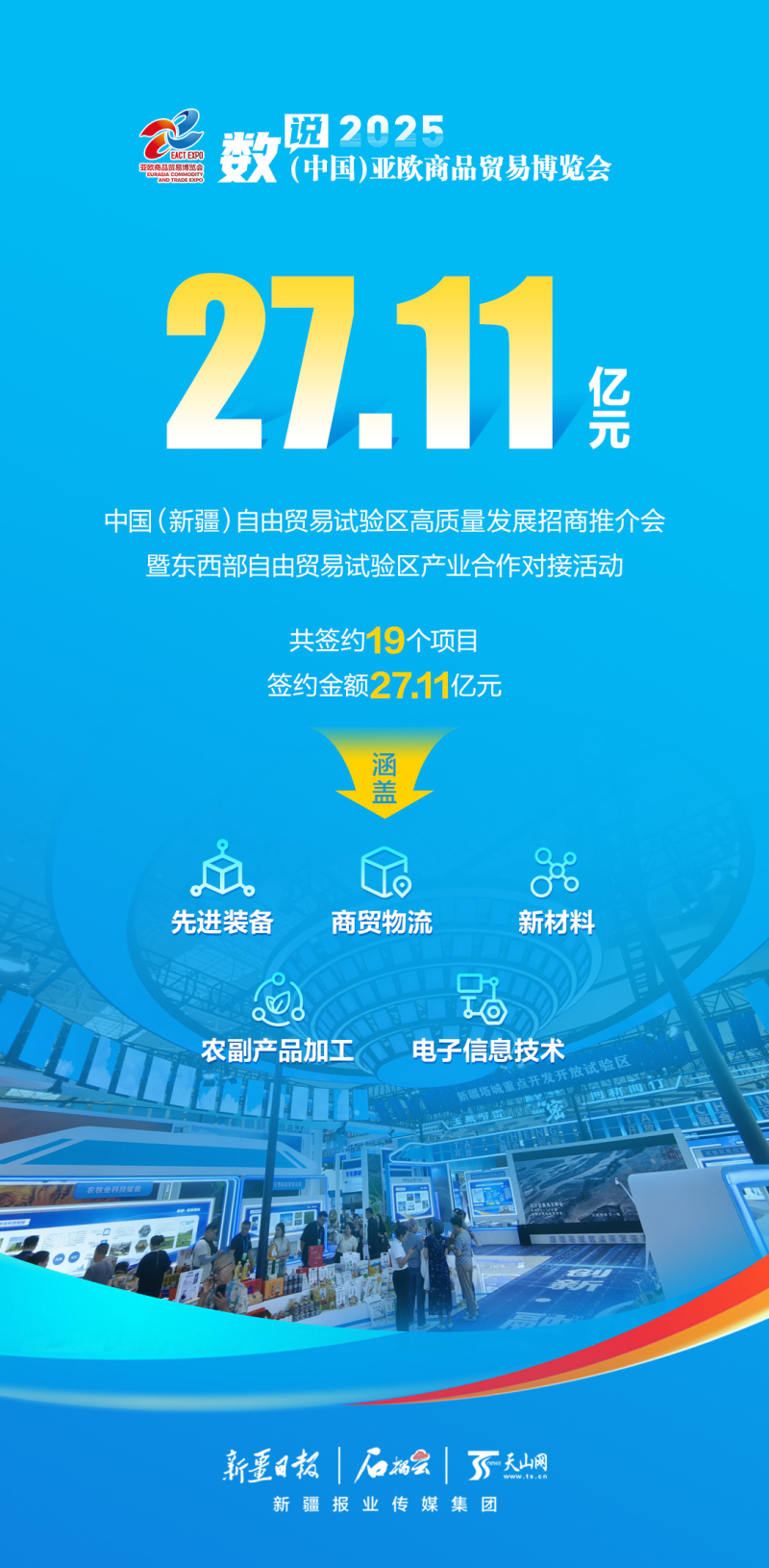 6月27日,2025(中国)亚欧商品贸易博览会招商引资推介暨重点项目签约活动在新疆国际会展中心举行?;嵘瞎睬┰枷钅?69个,签约总额2133亿元,涉及装备制造、新材料、新能源、煤炭加工、文旅酒店等领域。详情>>>