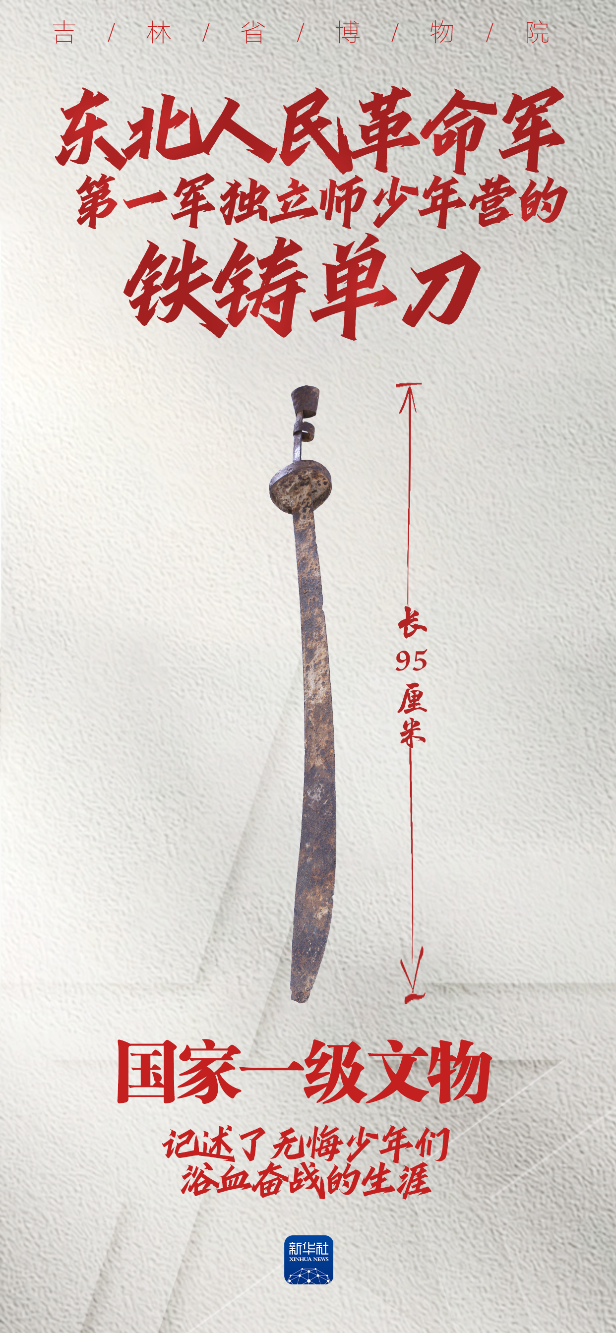 这柄铁质单刀,是“少年营”创建时仅有的两把之一,也是他们对敌作战时的武器之一。他们凭借敢打敢拼、顽强不屈的精神,成就了“铁血少年营”的威名。