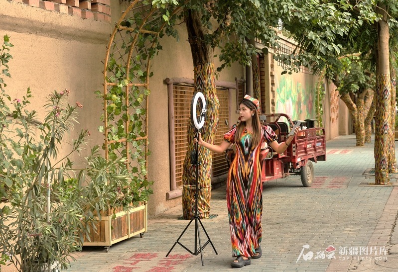 7月8日,新城西门村村民通过网络直播介绍家乡。 天山网-新疆日报记者王禹摄