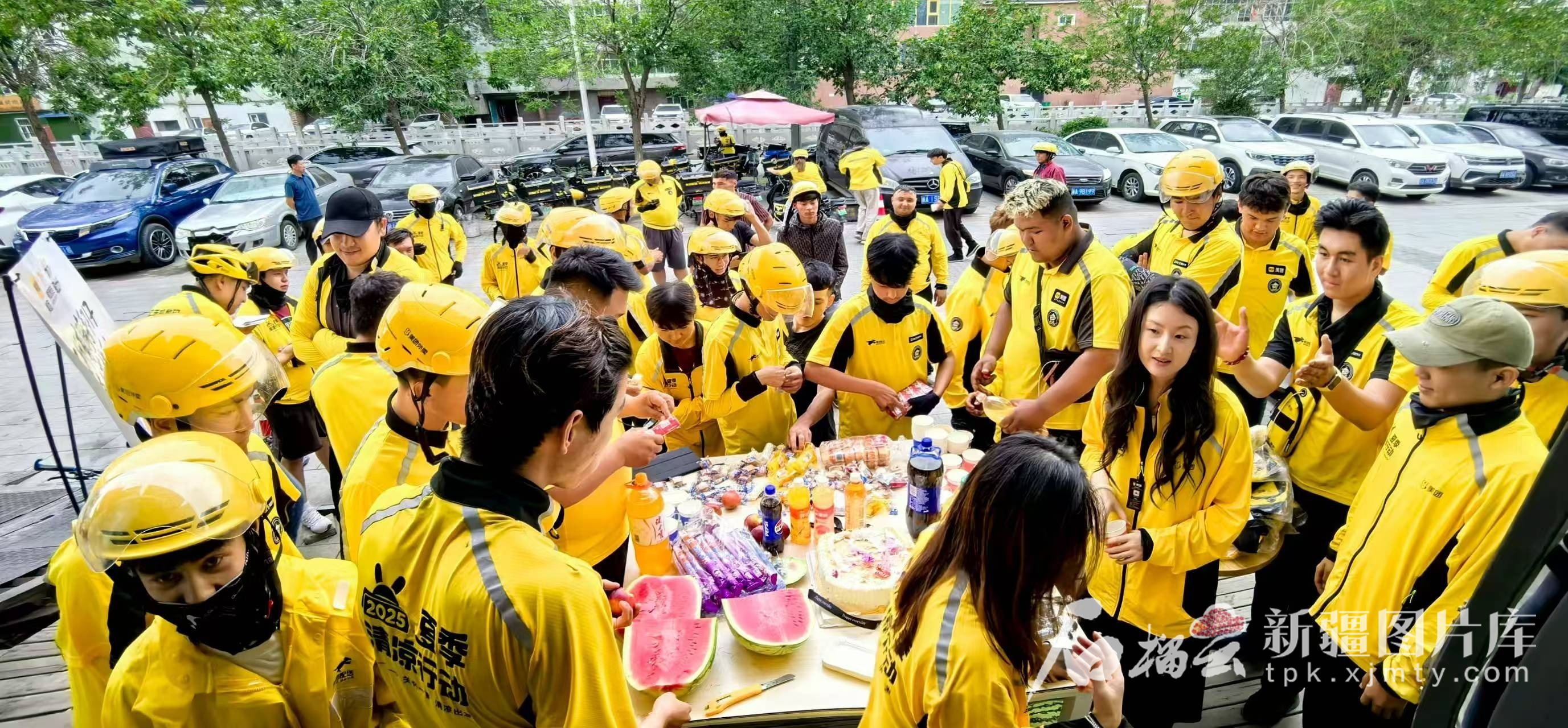 7月17日,美团乌鲁木齐汉唐站给骑手们准备了防暑物资。艾斯卡尔·乌买尔摄