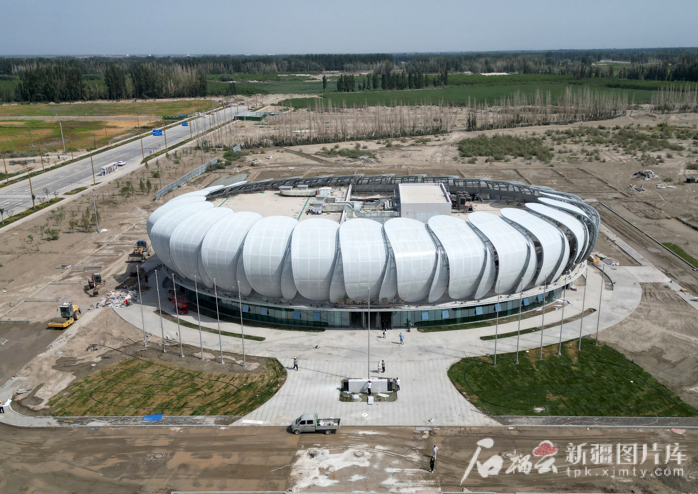 浙江大学医学院附属邵逸夫医院新疆生产建设兵团阿拉尔医院国际学术交流中心外景(8月12日无人机摄)。