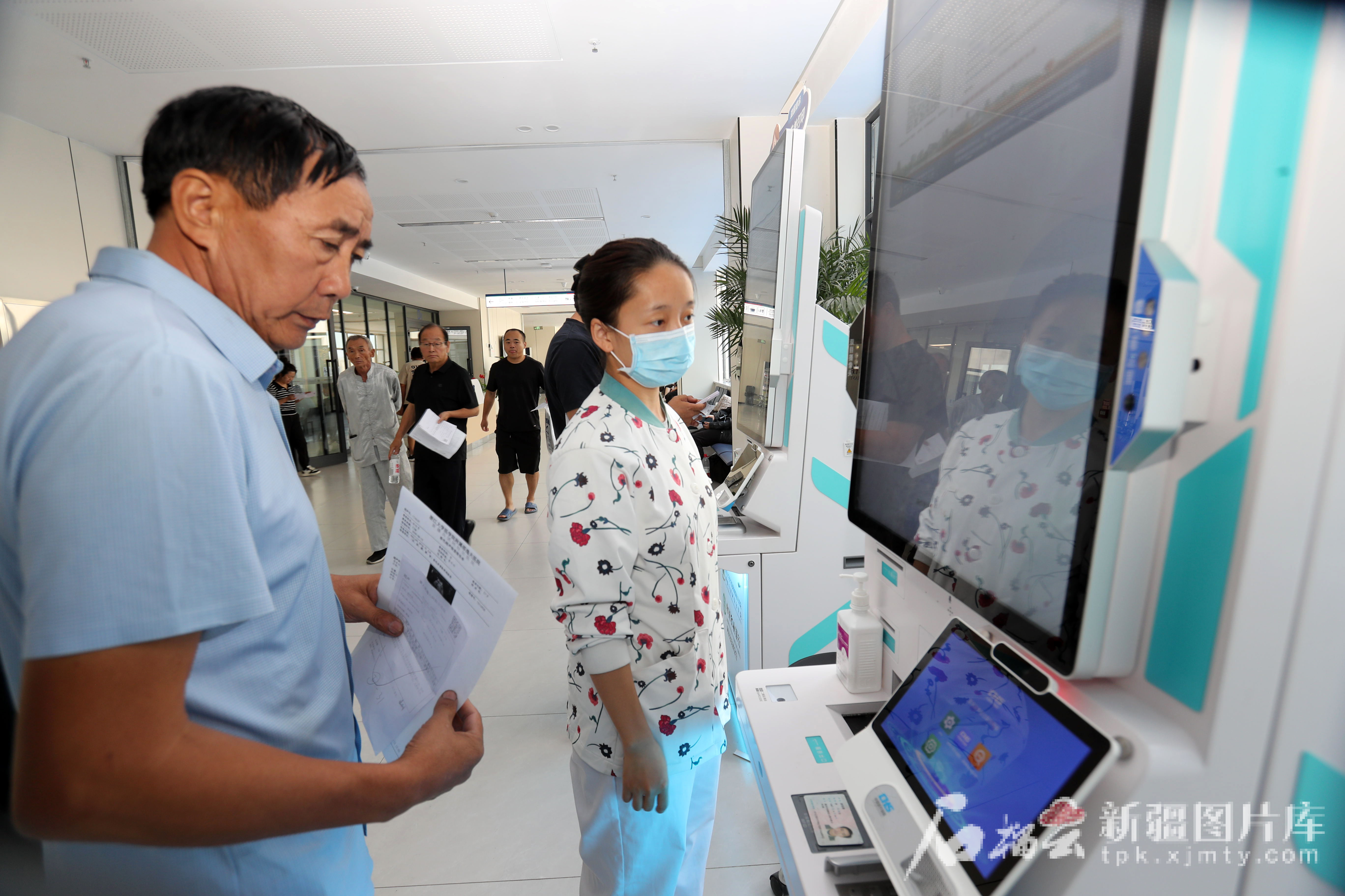 8月12日,患者在浙江大学医学院附属邵逸夫医院新疆生产建设兵团阿拉尔医院门诊就诊自助机预约挂号。