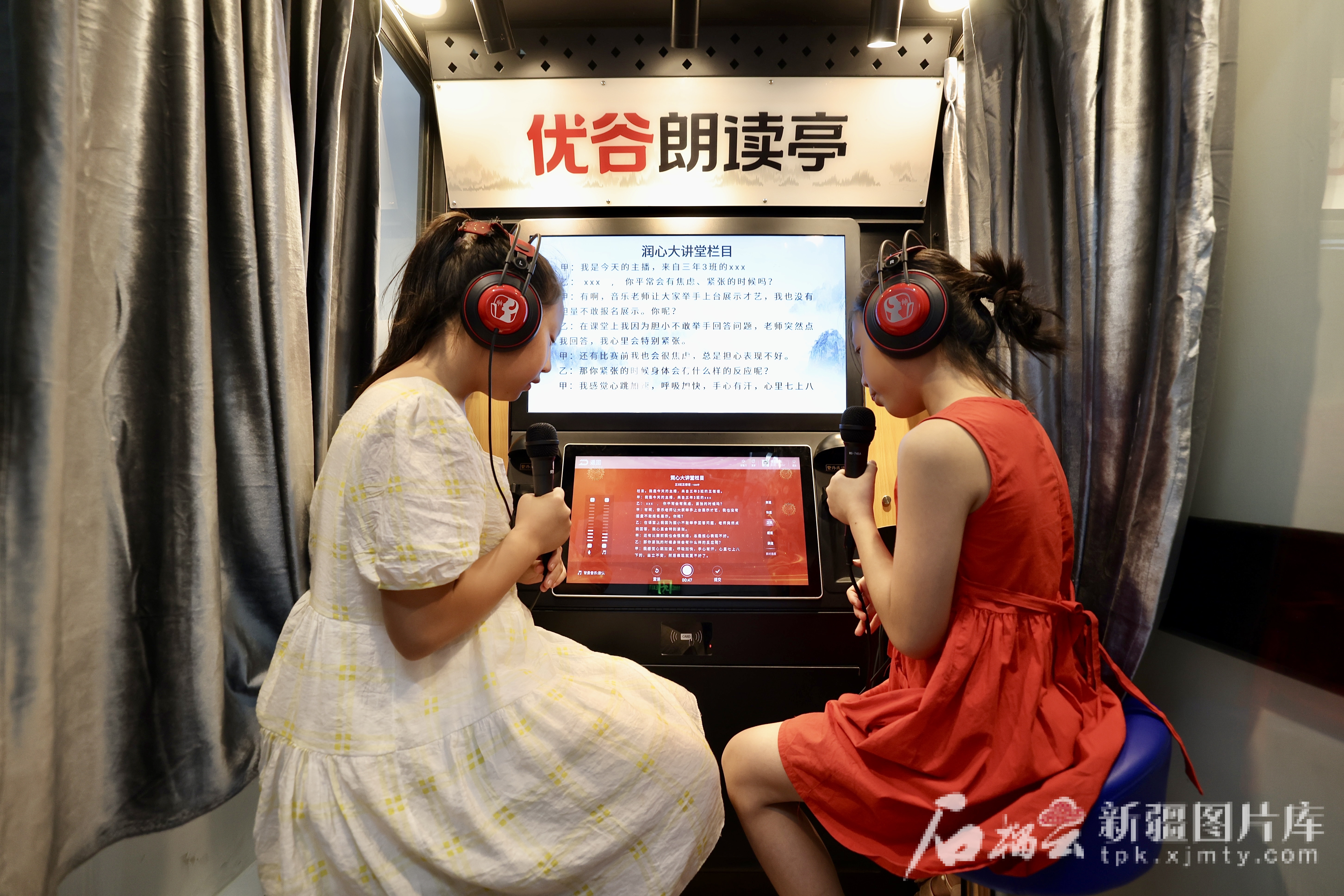8月11日,在昌吉市刺桐国学书院,孩子们在二楼的朗读亭练习阅读。