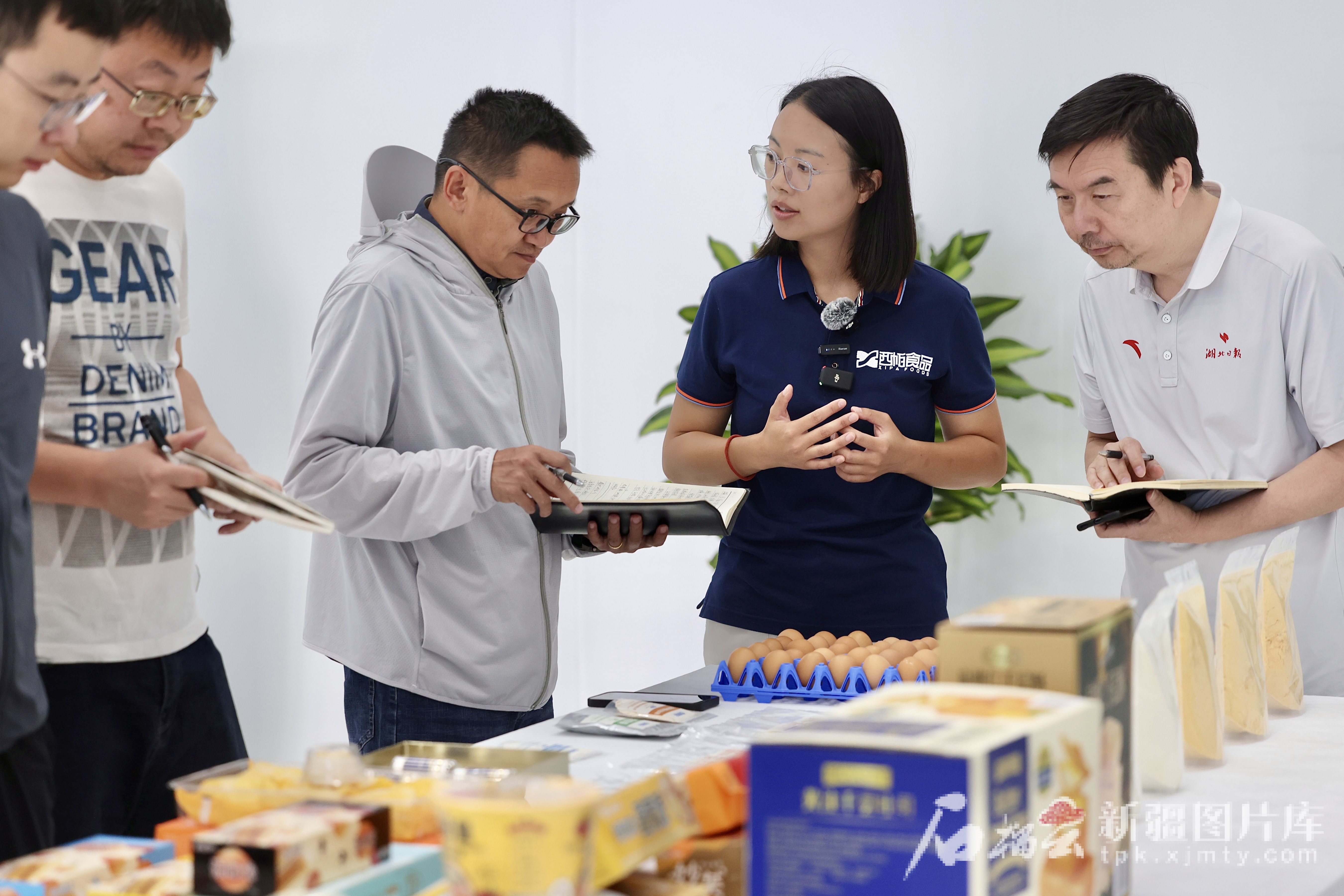 8月14日,“对口援疆 潮涌天山”主题采访活动采访团走进新疆西帕健康食品有限公司,了解产品展示区的蛋白粉、蛋黄粉、全蛋粉、溶菌酶等鸡蛋精深加工产品。