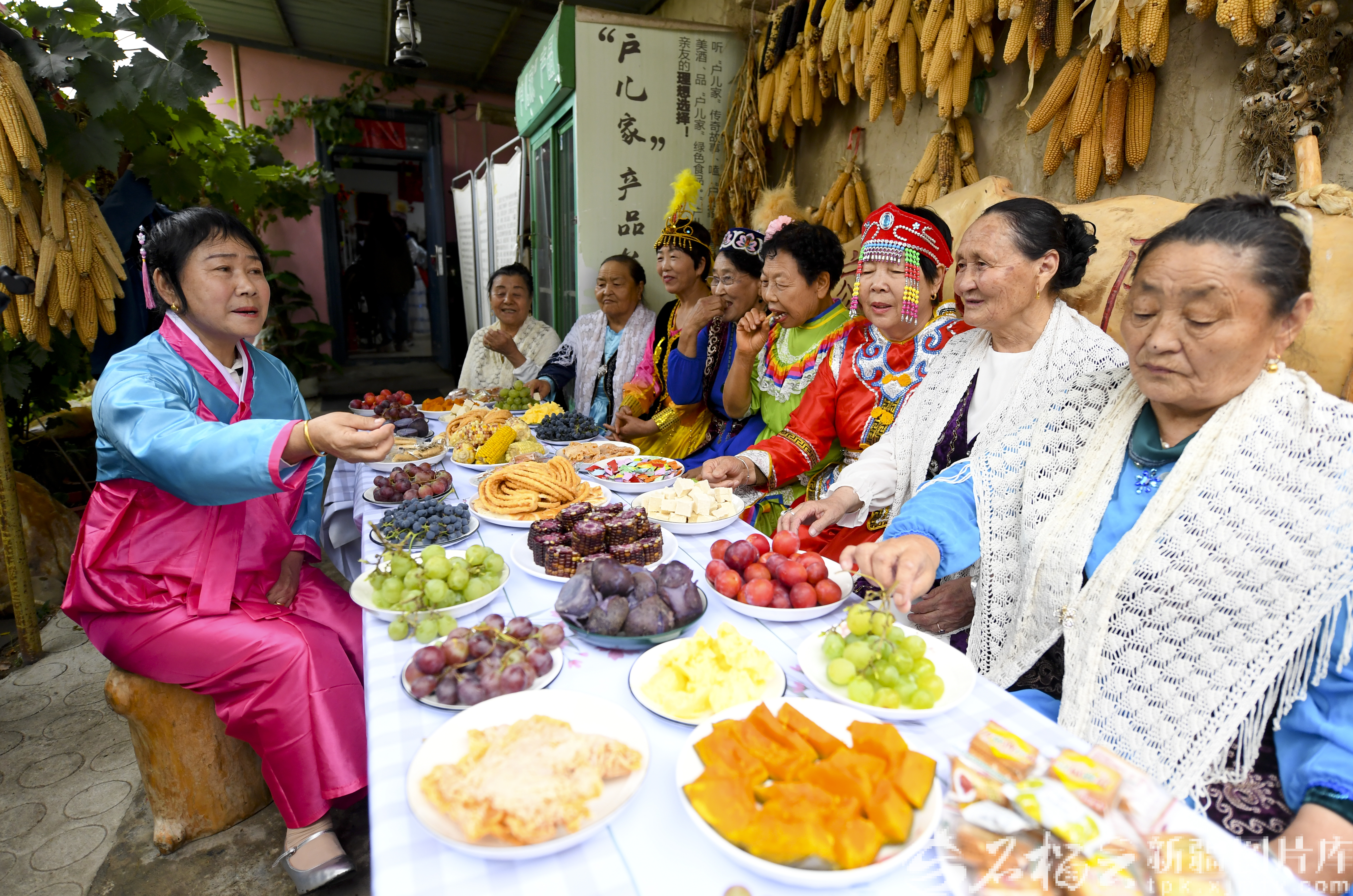9月9日,各族村民在“户儿家”文化大院欢迎参观者。
