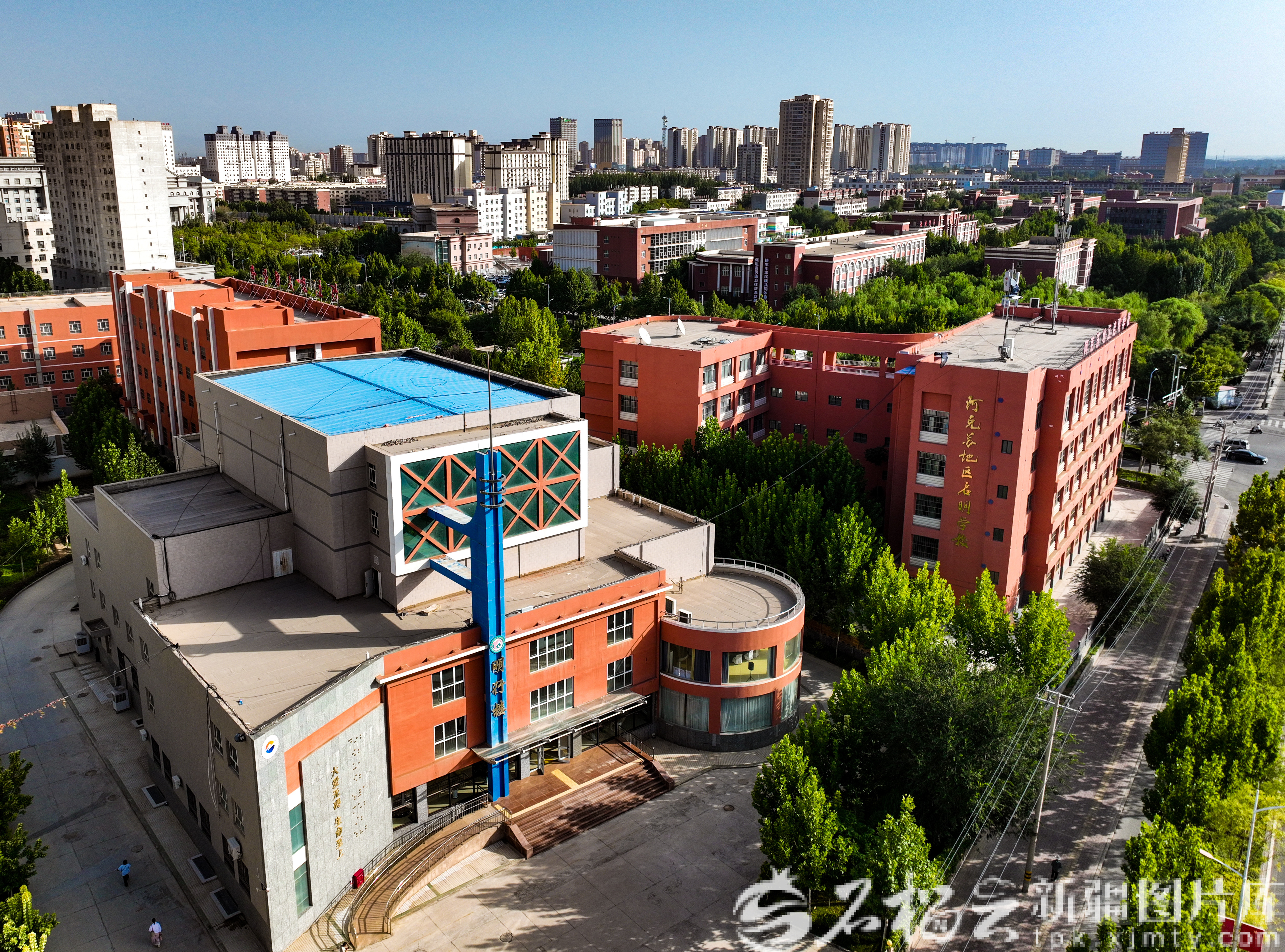 9月11日,航拍位于阿克苏市的阿克苏地区启明学校。