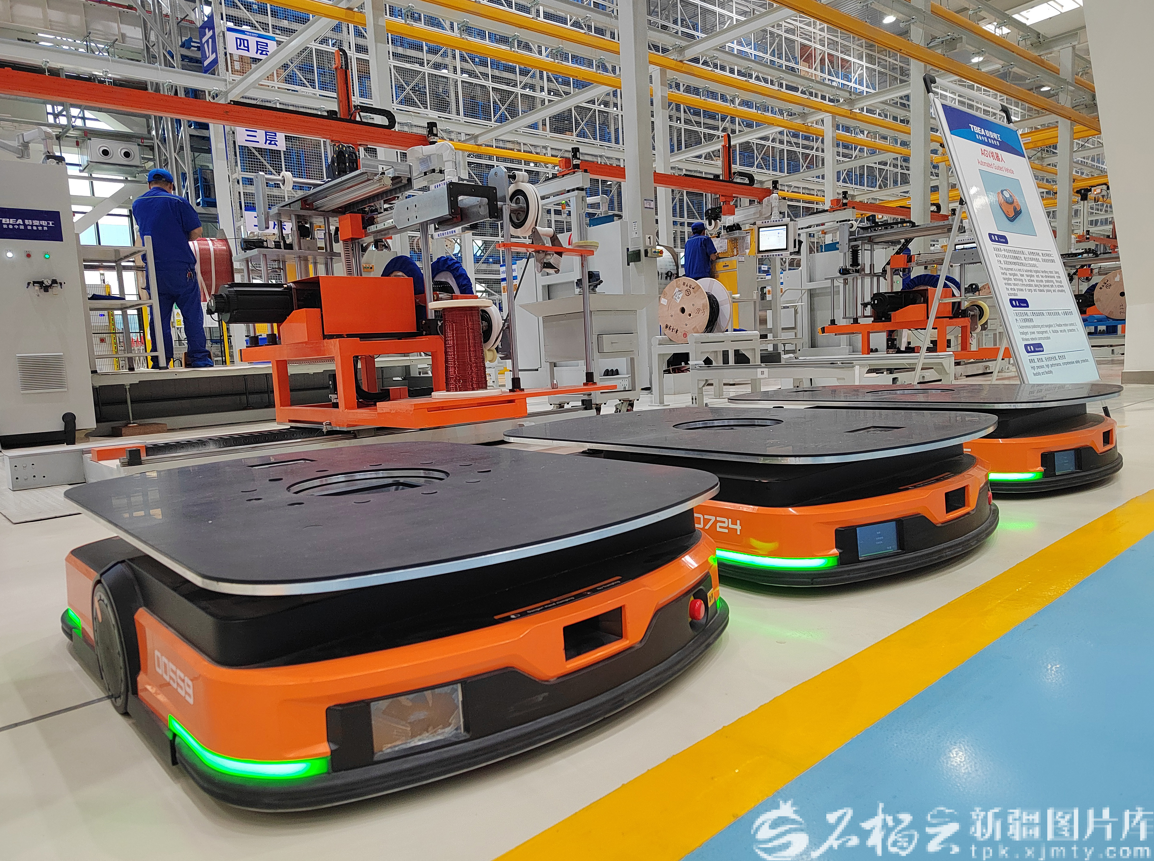 9月10日,特变电工智能电气装备科技产业园智能电气数字化车间里搬运物料的智能机器人整装待发。