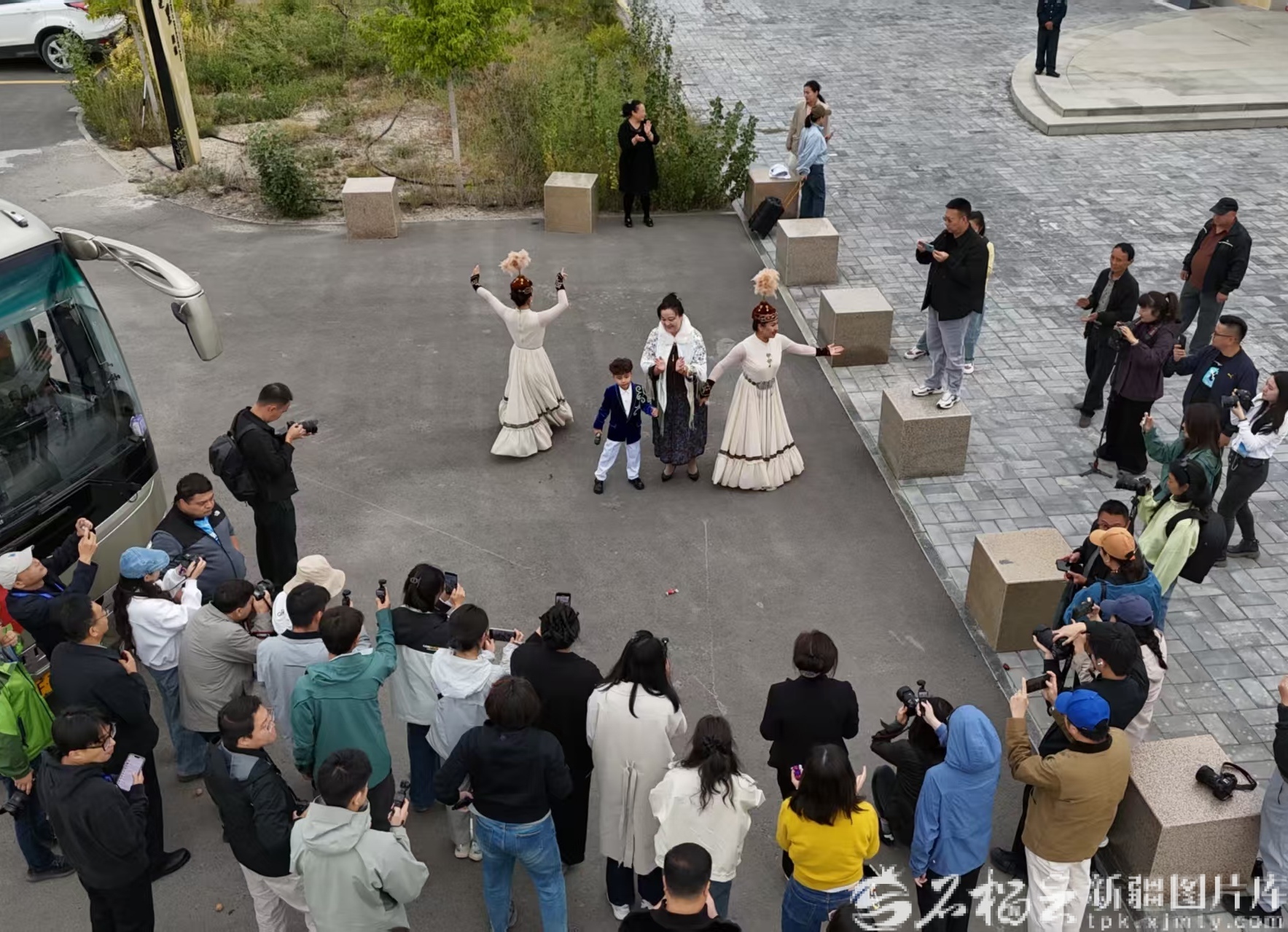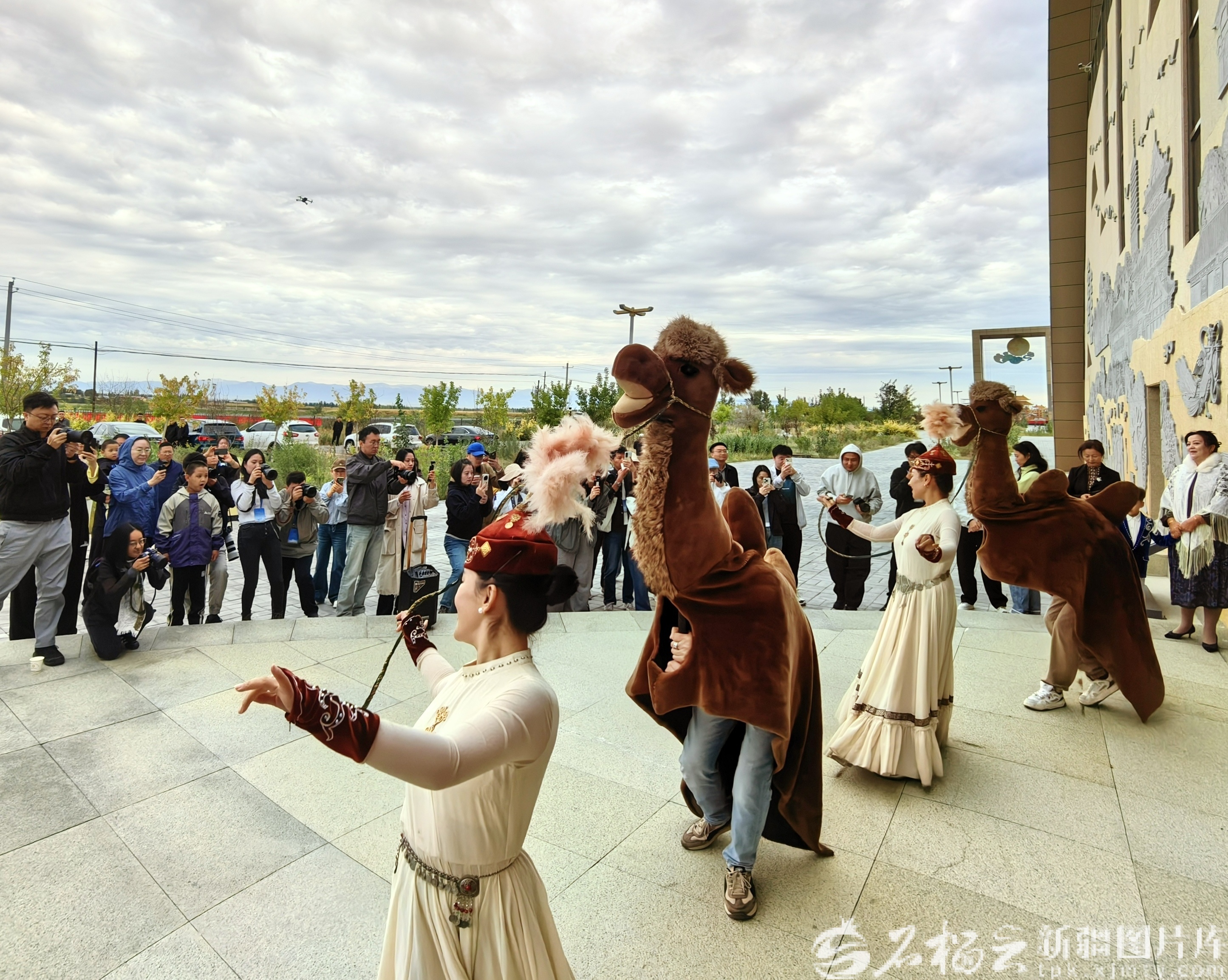 9月13日,游客在也迷里文化园欣赏骆驼舞表演。