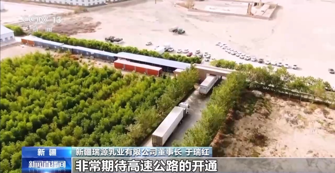 高速沿线,物流园区、冷链基地,一座座产业新地标正加快布局。在天山南麓,第一次通上高速公路的和静县,也迎来了这家年产4万吨鲜奶的乳品企业。眼下,他们正在抓紧扩建仓储车间、采购冷藏运输车,准备开通新的鲜奶配送专线。