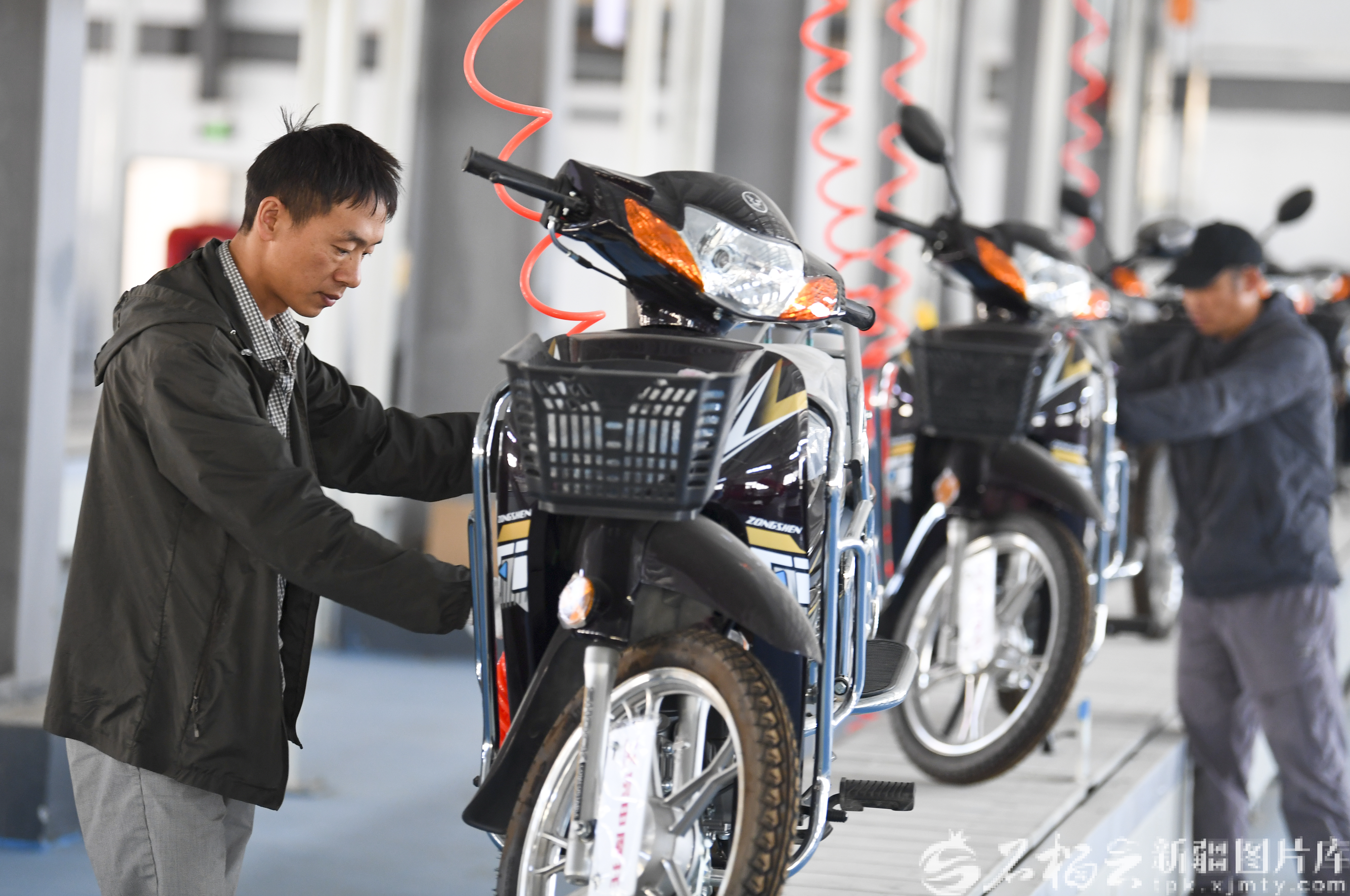 9月13日,在伊尔克什坦口岸园区,新疆悍界制造有限公司的员工在组装销往中亚的摩托车。