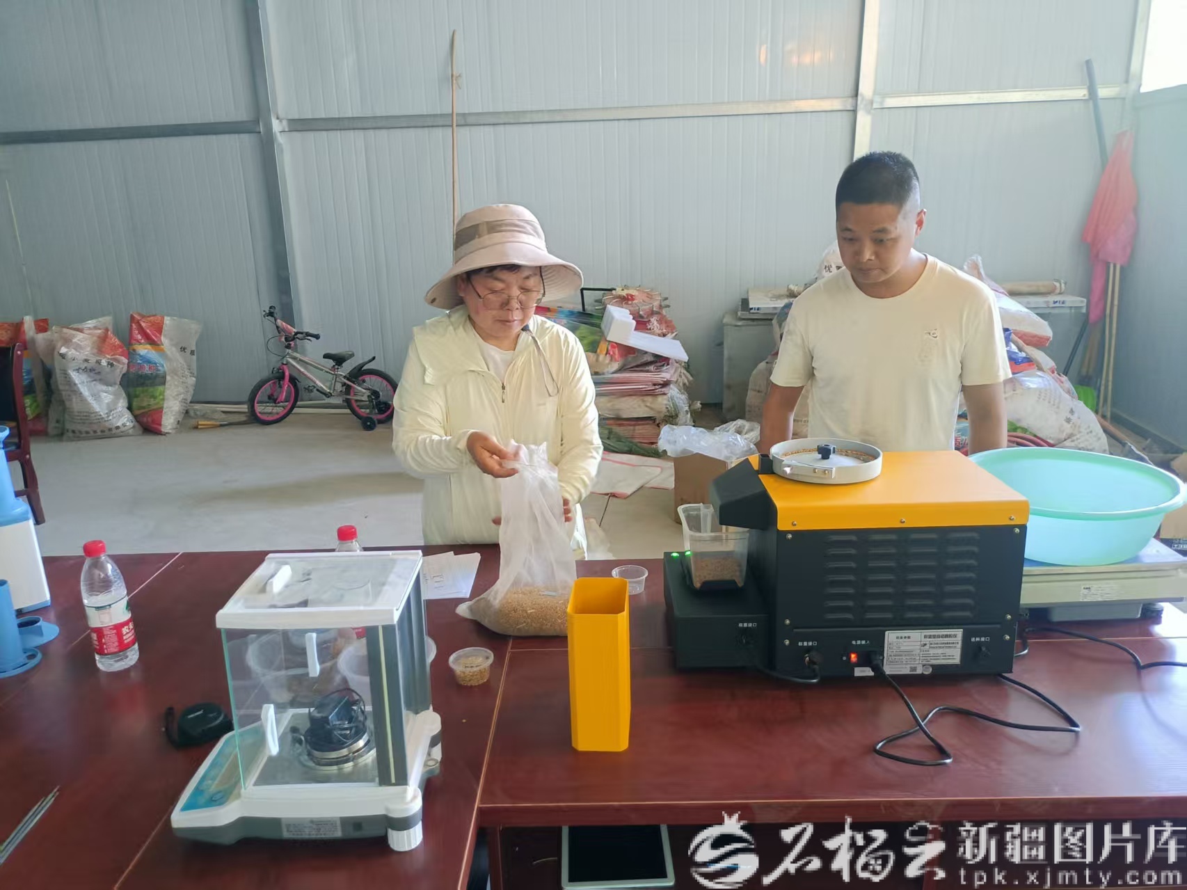 2025年7月3日,关丽菊(左)进行小麦品种试验区千粒重称重。本人供图