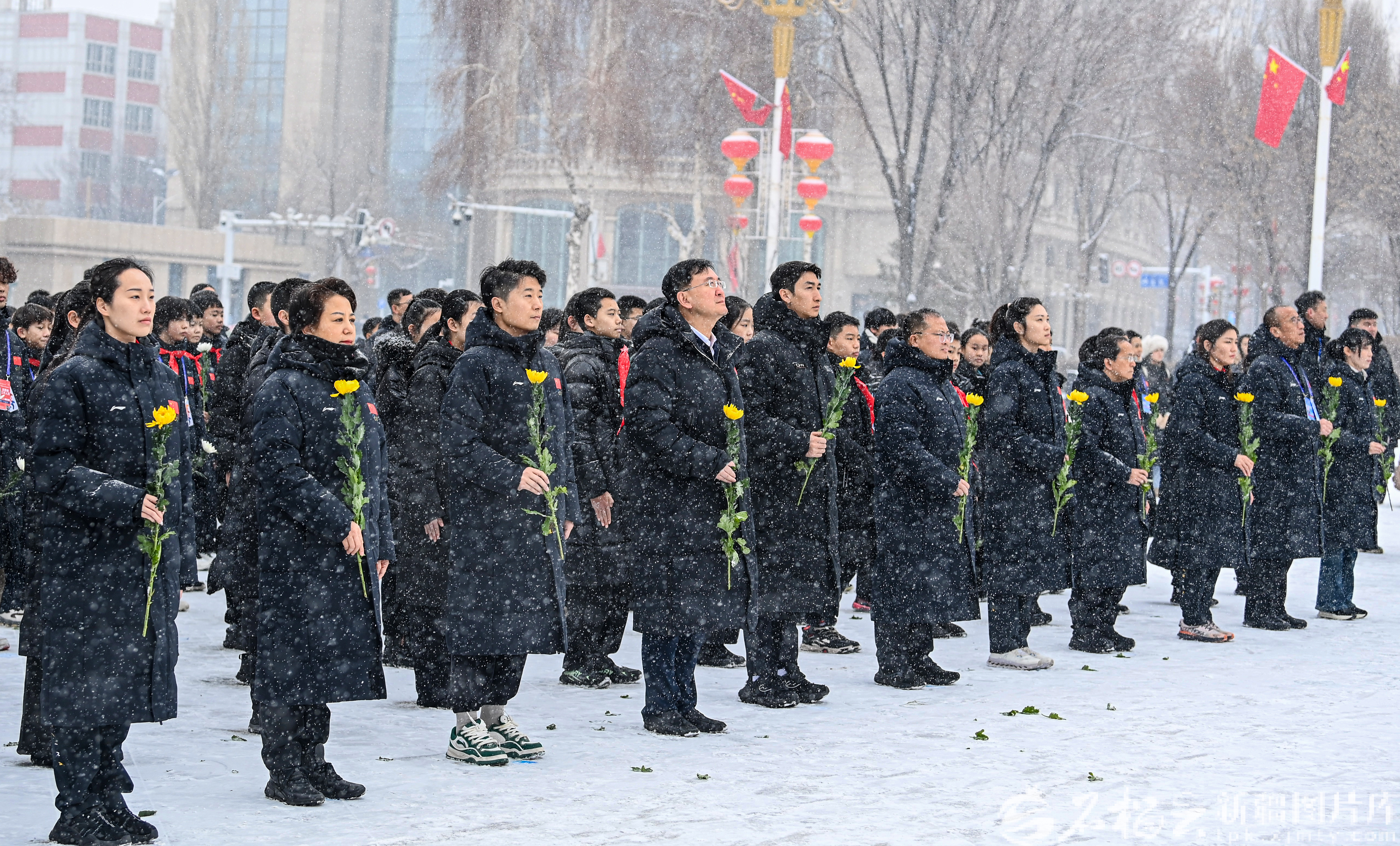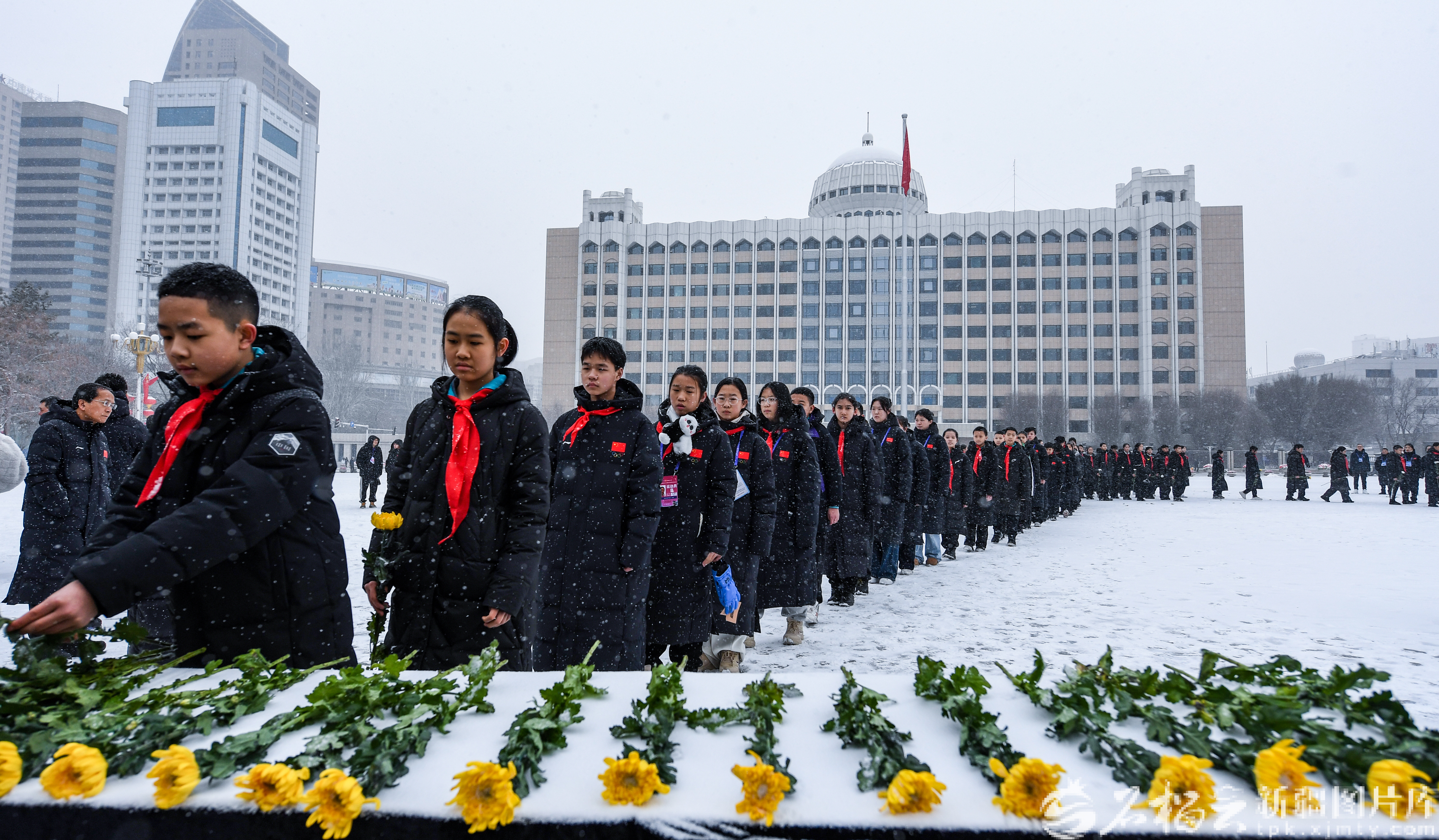 1月29日,来自全国34个代表团的优秀运动员代表、教练员,与本地少先队员共230余人齐聚中国人民解放军进军新疆纪念碑前,以敬献花篮的方式,缅怀革命先烈、传承红色基因。