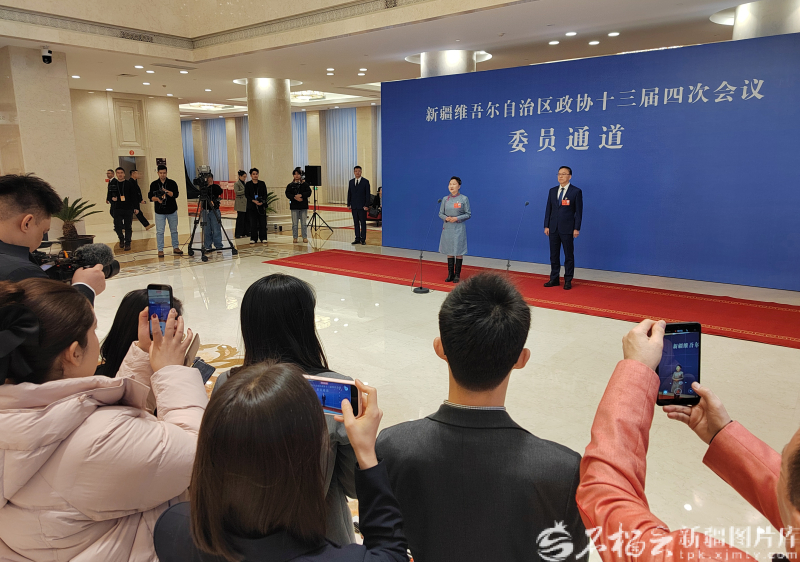 1月26日,自治区政协十三届四次会议“委员通道”集体采访活动现场。天山网-新疆日报记者 邹懿摄