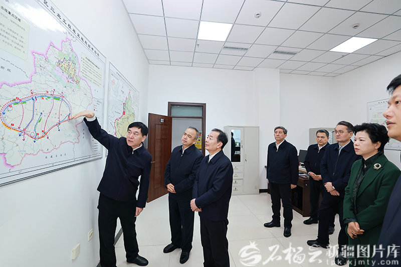 2月5日,自治区党委书记陈小江、自治区主席艾尔肯·吐尼亚孜在自治区水利厅,深入了解全区水旱灾害防御平台建设、应急处置等情况。石榴云/新疆日报记者 崔志坚摄